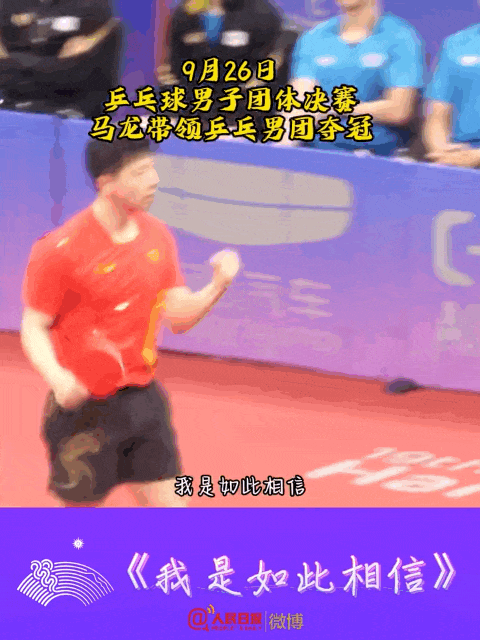 乒乓球男子團體決賽,馬龍帶領乒乓男團奪冠,場館內播放了《我是如此相信》。