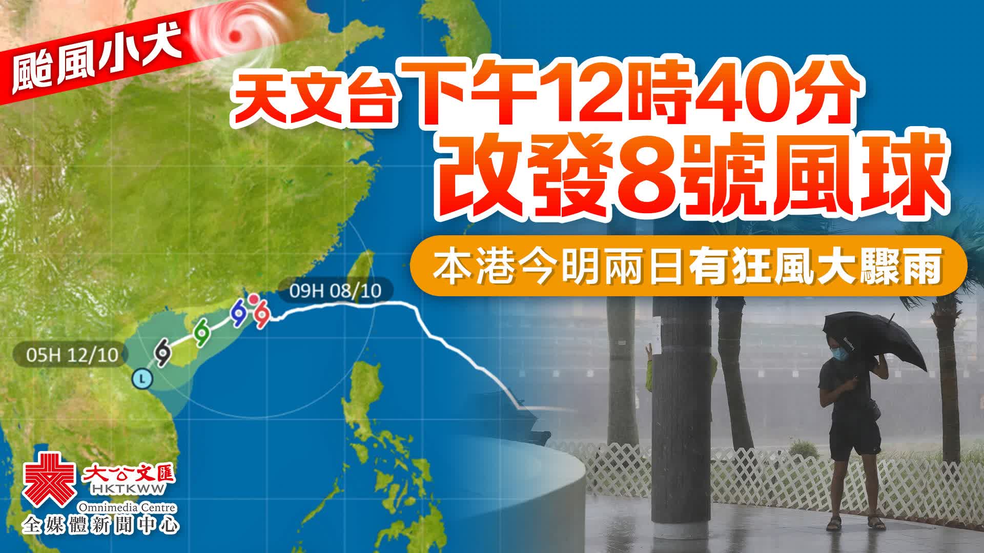 大公文匯全媒體報道,颱風「小犬」靠近本港,天文台將在今日(8日)中午12時至下午2時之間改發八號烈風或暴風信號。