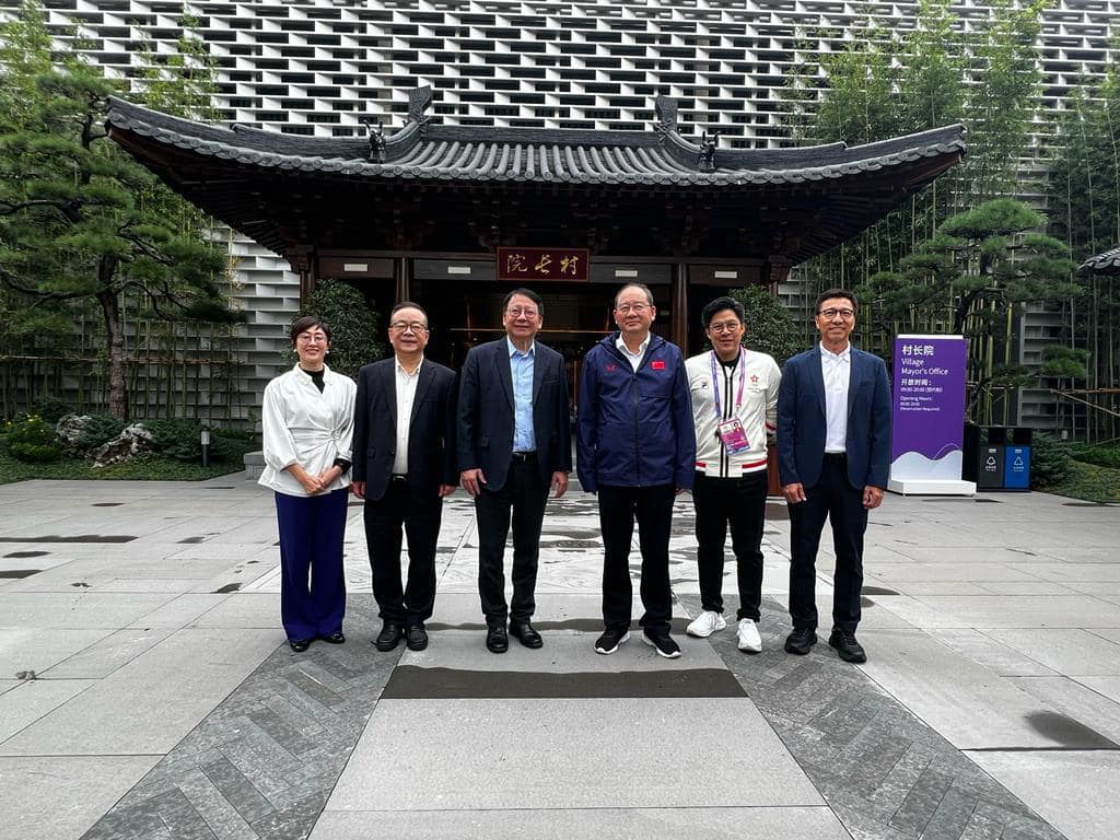 陳國基今早聯同體育專員黃德森前往杭州亞運會運動員村,與村長李火林會面。他代表特區政府,衷心感謝杭州對中國香港隊無微不至的照顧,讓他們可無後顧之憂地全力備戰,並在賽事中盡情發揮。