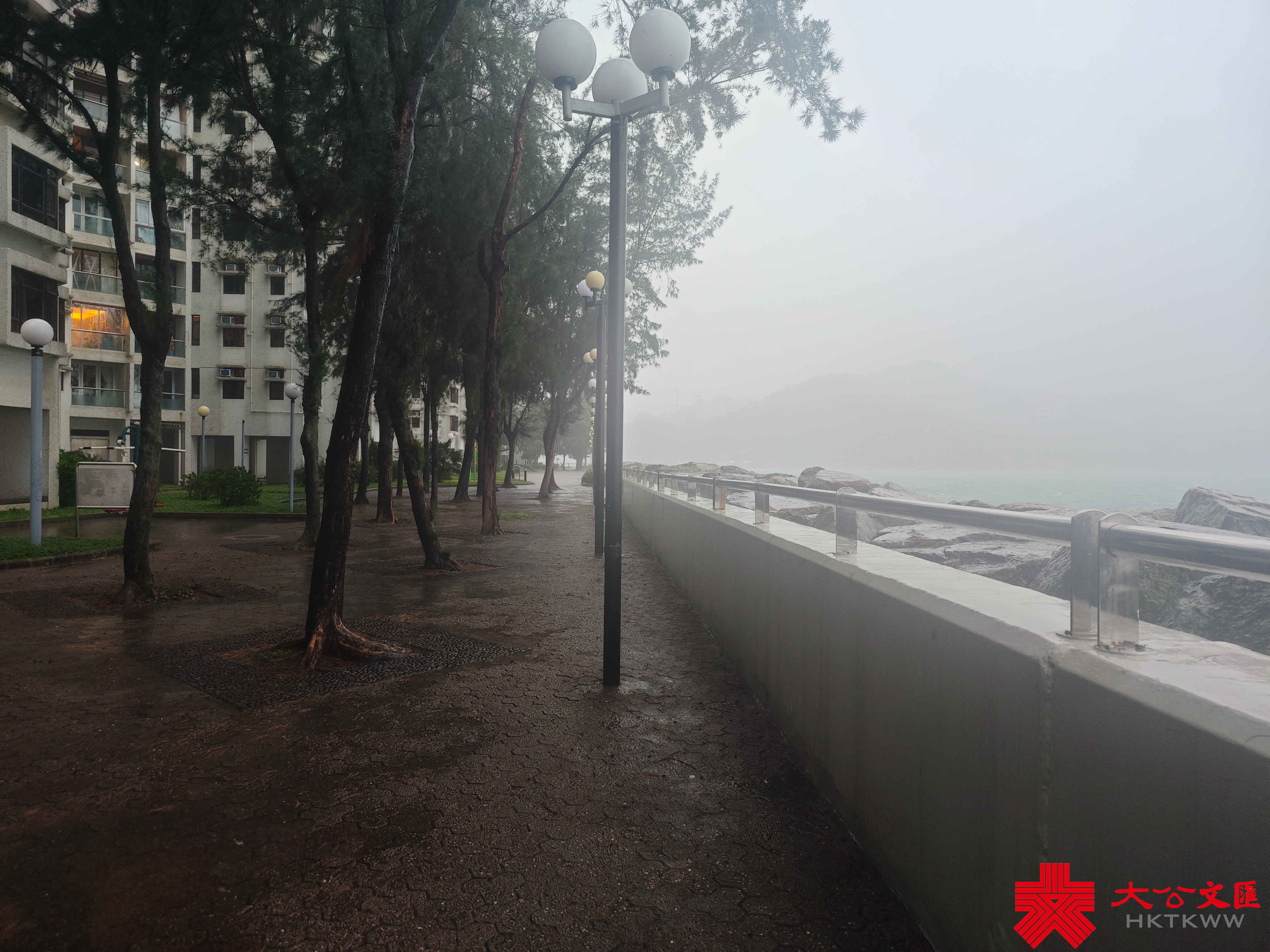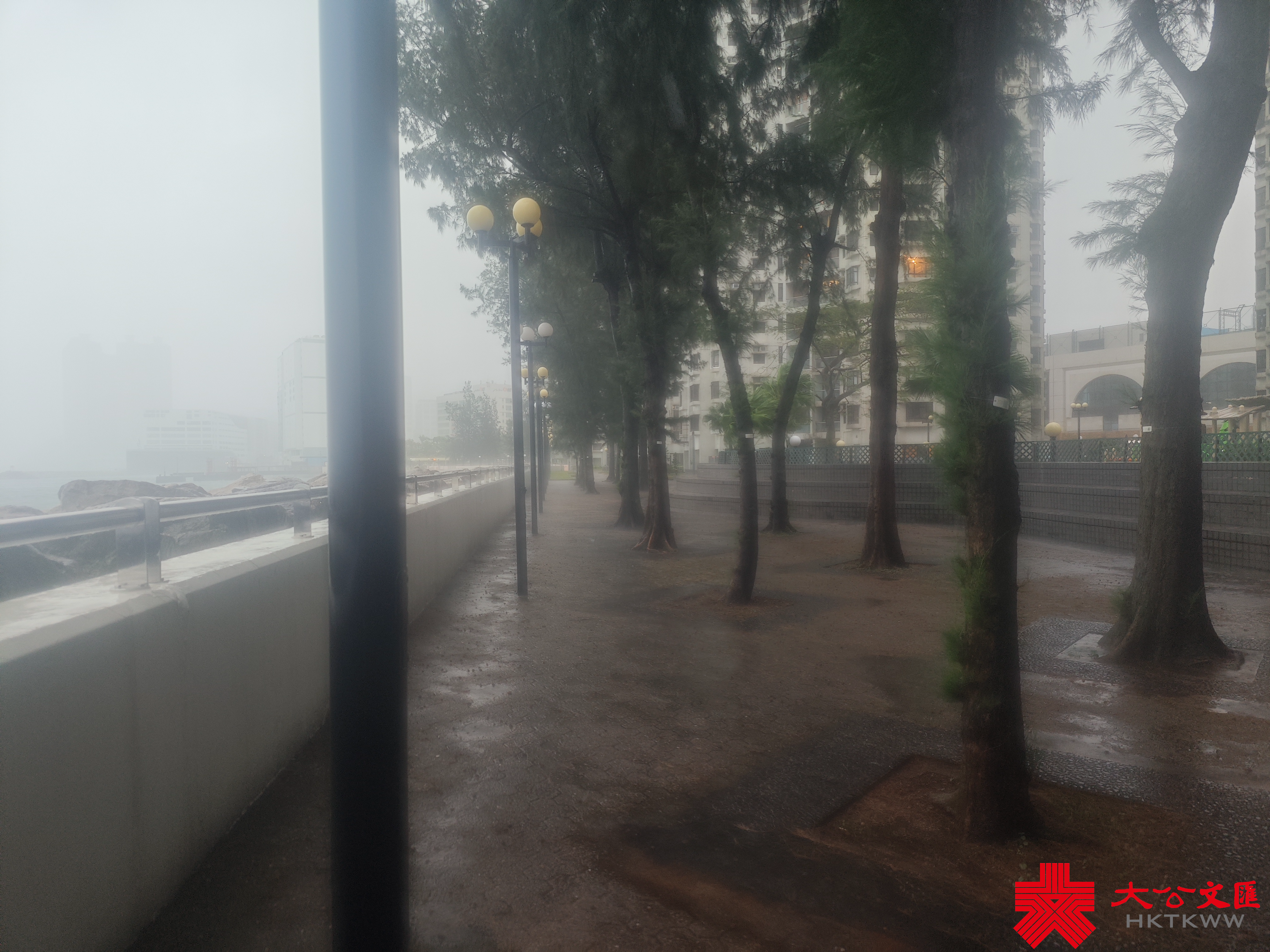 (大公文匯全媒體記者 王俊傑)颱風「小犬」襲港,天文台今日(8日)下午12時40分掛起8號風球。杏花邨每逢打風必成重災區,點新聞記者直擊杏花邨打風現場,掛波後風勢猛烈,並且大雨滂沱,樹木被吹至東倒西歪。近傍晚,早些時候落樓追風的街坊悉數返巢,僅餘下記者與一眾行家「一眼萬年」。