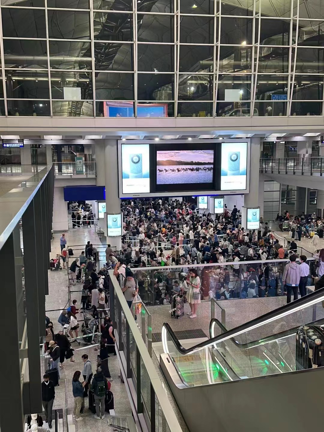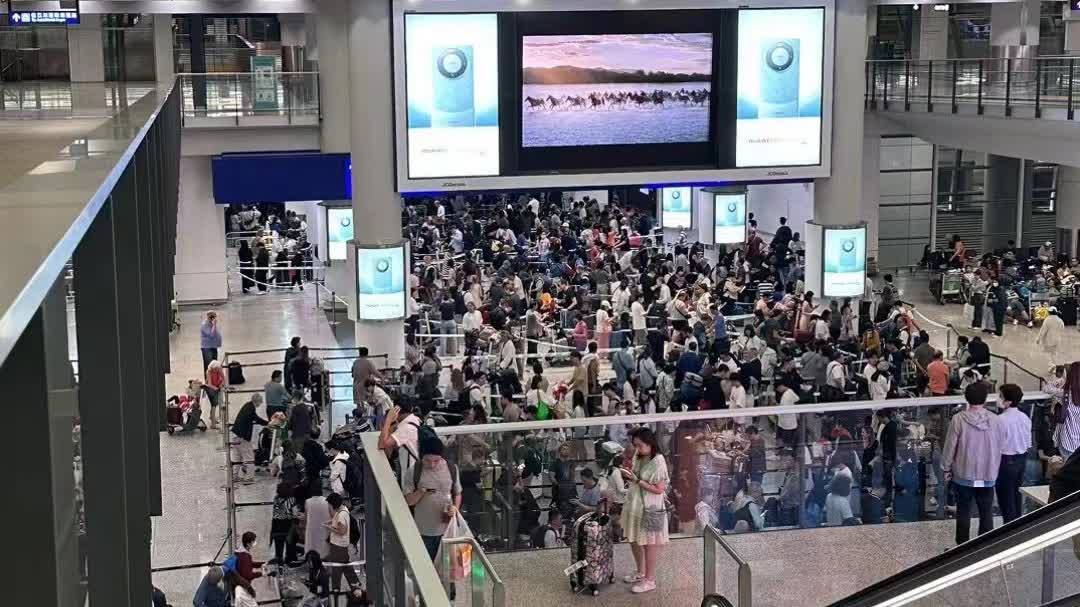 大公文匯全媒體報道,颱風小犬襲港,九號烈風或暴風風力增強信號在今日(8日)下午7時正發出。據讀者爆料,香港機場等待的士的人已經排起長龍,惟僧多粥少,現場的士沒有幾輛。機管局表示,按現時颱風情況,為安全起見,勸喻旅客盡量留在機場客運大樓內。機管局現正與公共交通營運商協調,爭取天氣情況許可下盡快恢復交通服務,疏導旅客。