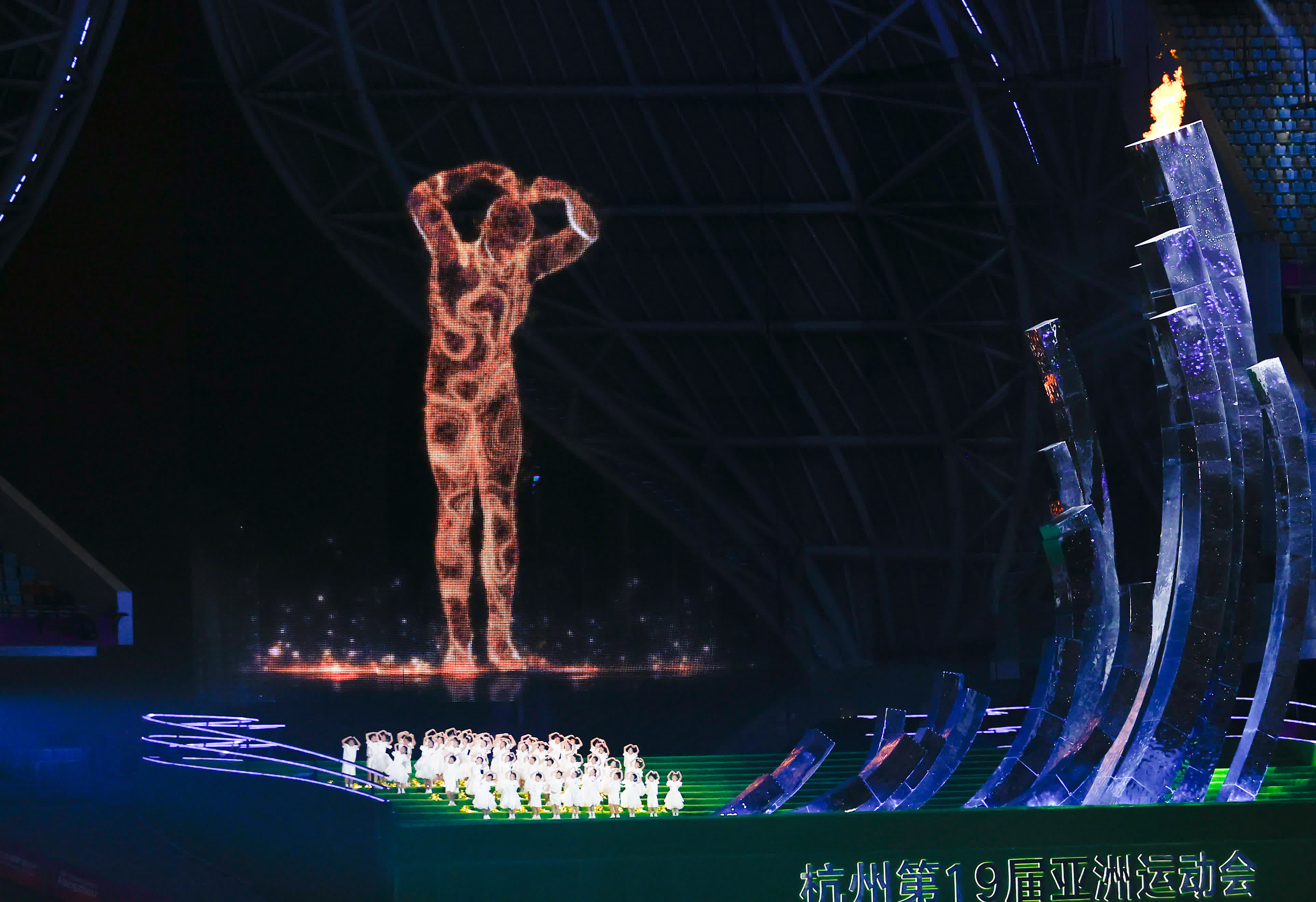 杭州亞運會閉幕式上,全球首創的「數控草坪」令觀眾驚喜萬分,而另一亮點,則是由超過1億數字火炬手匯聚而成的「數字火炬人」於閉幕式再度亮相,而這次他有了自己的名字─「弄潮兒」。只見「弄潮兒」在人們的歡呼聲中,行至主火炬塔前,調皮地將兩手畫圈,做出愛心的形狀,與場內的數萬名觀眾「暖心互動」。隨後,在眾人的見證下,主火炬塔緩緩熄滅。在天籟般的童聲中,「弄潮兒」一步三回頭地向遠方奔去,離開奧體中心,逐漸騰空而去。