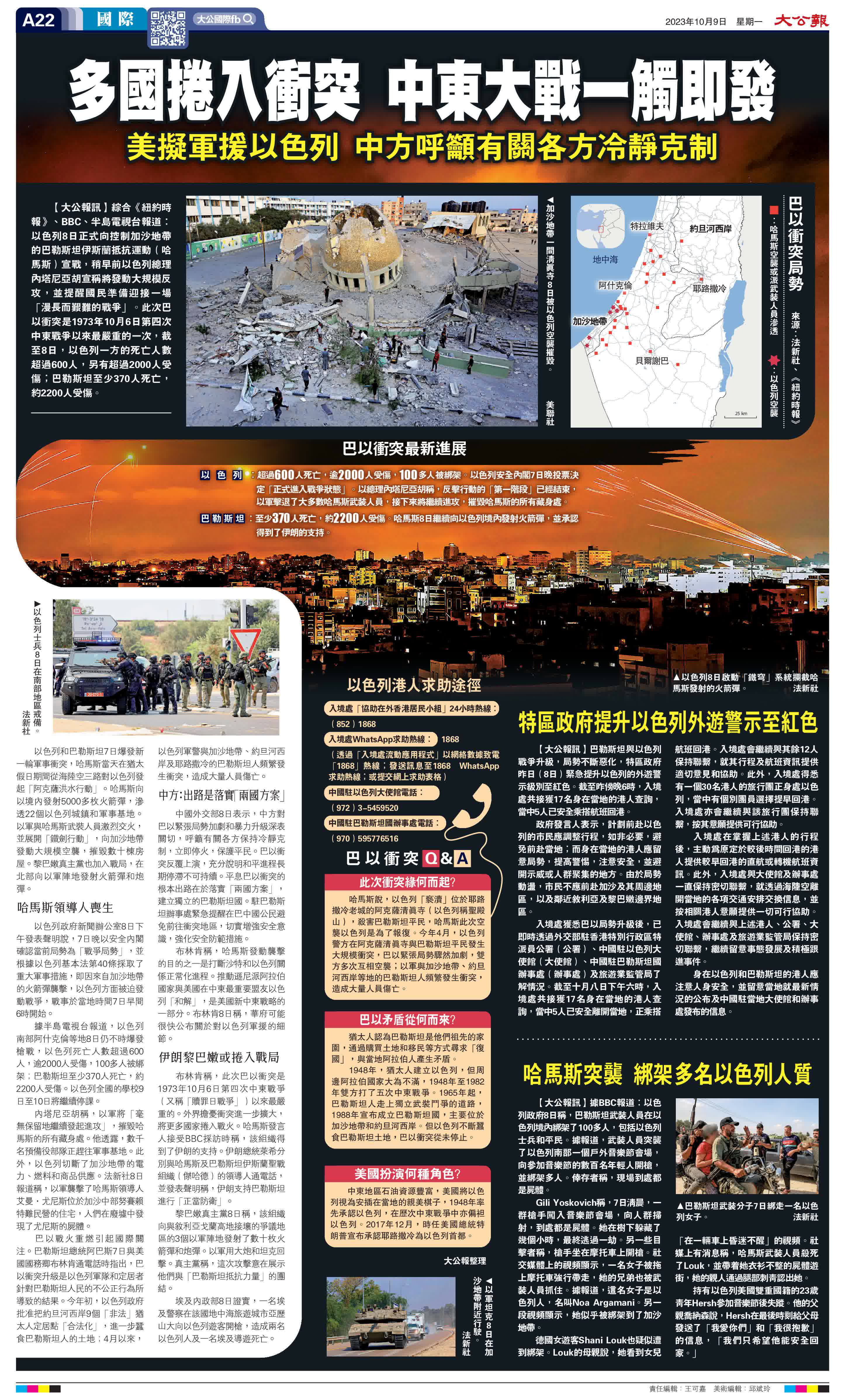 (來源:大公報A22:國際 2023/10/09)