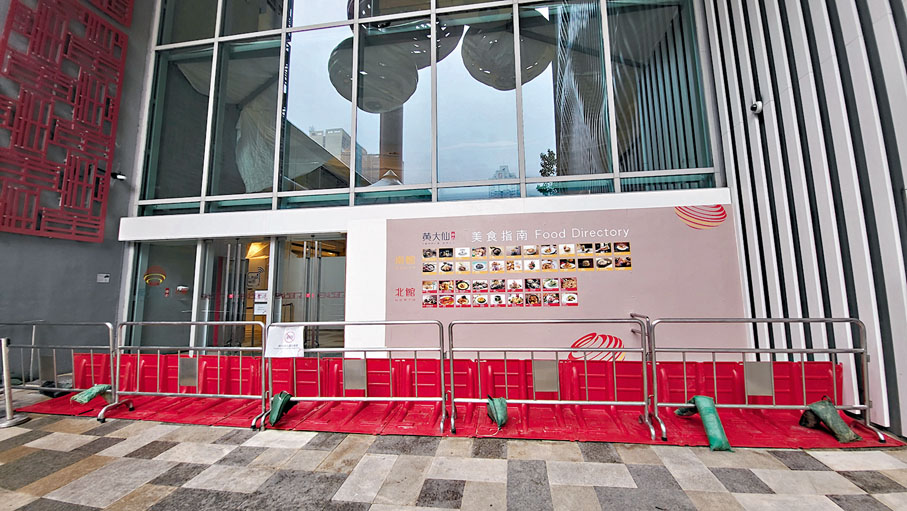 (香港文匯報 記者 郭倩)香港於上月經歷了世紀黑雨,多區出現嚴重水浸,當中黃大仙成為重災區,港鐵站和商場均遭洪水淹浸。今次「小犬」來襲,香港文匯報記者昨日下午到黃大仙港鐵站和黃大仙中心直擊,發現該兩個地點皆嚴陣以待,連接黃大仙中心北館與黃大仙祠的長樓梯斜路上方,已擺放了長約20米的防水板和沙包。而黃大仙北館門外亦擺設了防水板、沙包和鐵欄防範洪水。黃大仙站B3出口仍如常開放,是次大雨並未對商場和港鐵站造成很大影響。