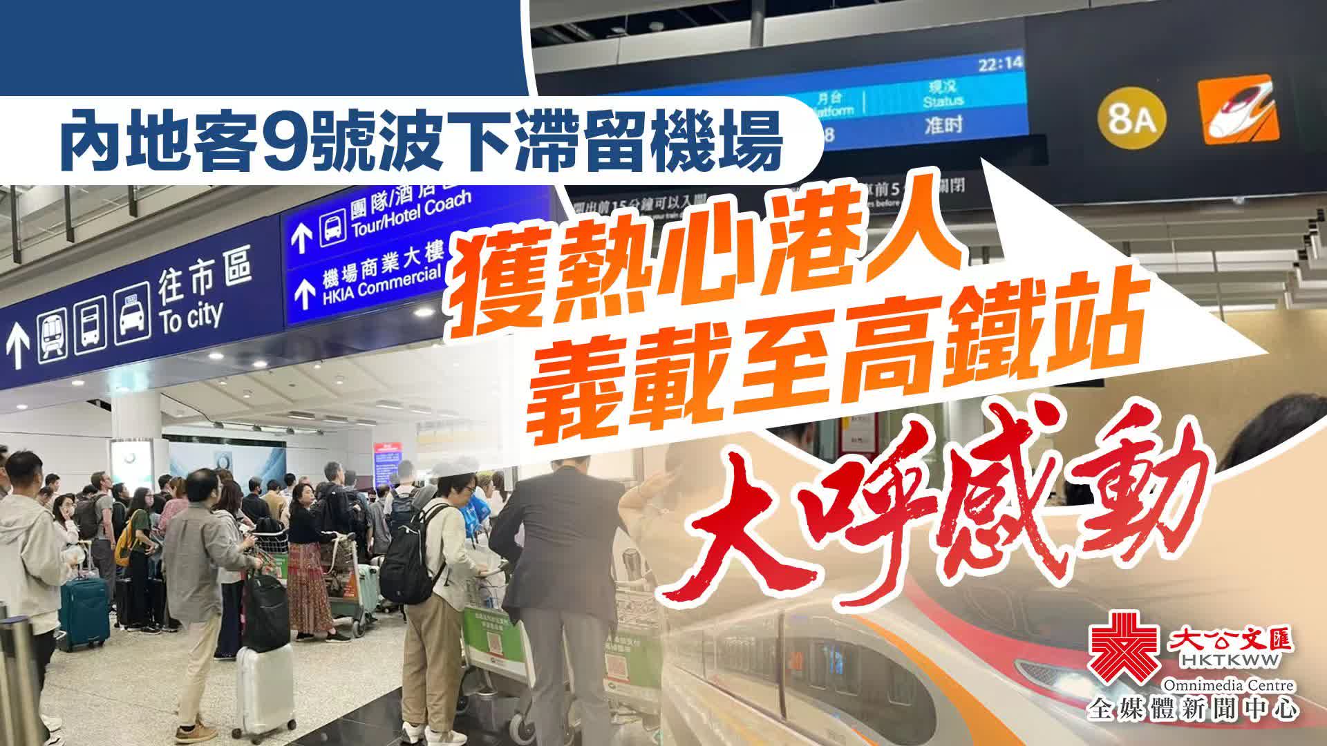 大公文匯全媒體報道,颱風「小犬」襲港,九號風球昨(8日)晚懸掛期間,逾萬旅客因機場快綫、巴士停駛而滯留機場,的士站更是大排長龍,平均需等候約3小時。有內地網民在社交平台「小紅書」分享個人經歷,指自己和家人在機場被困時,意外獲一位熱心港人義載至高鐵西九龍站。她又指,原本想支付酬勞,對方卻表示分文不收,令她備受感動。