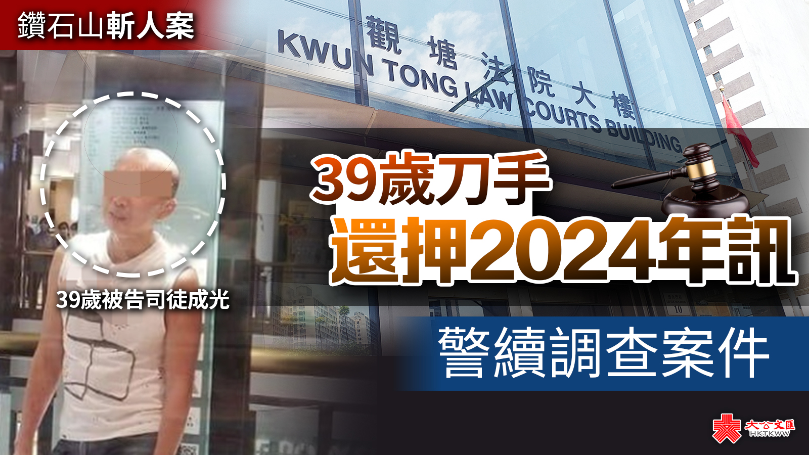大公文匯全媒體報道,今年6月,鑽石山荷里活廣場發生恐怖斬人案,兩名26歲及22歲的女子不治身亡,一名39歲男子當場被捕,被落案控以兩項謀殺罪。案件原定昨日(9日)在觀塘裁判法院提訊,因應颱風「小犬」而延至今日(10日)處理。法庭應控方要求將案件押後至明年1月29日再訊,以待警方繼續調查案件。被告沒有保釋申請須還押。