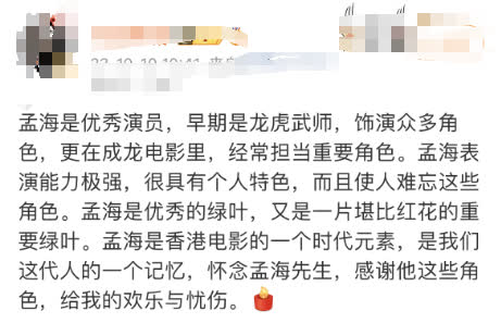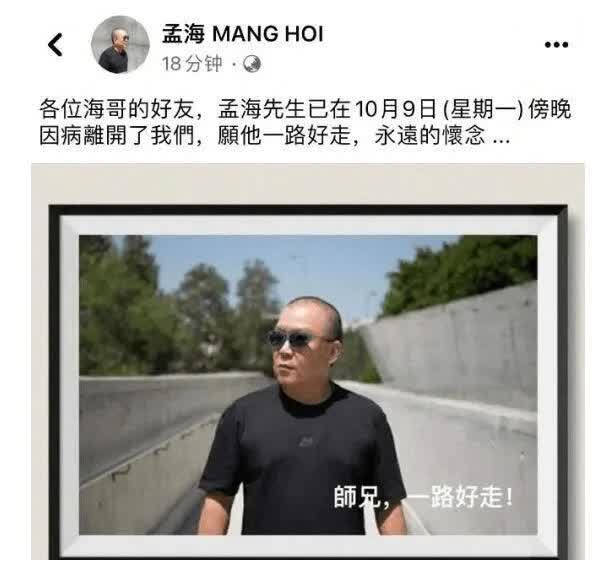 據廣州日報報道,曾憑《皇家師姐》奪得第5屆香港電影金像獎最佳男配角獎的香港著名演員孟海10日凌晨傳出去世的消息,多位圈中人在社交平台發文悼念。
