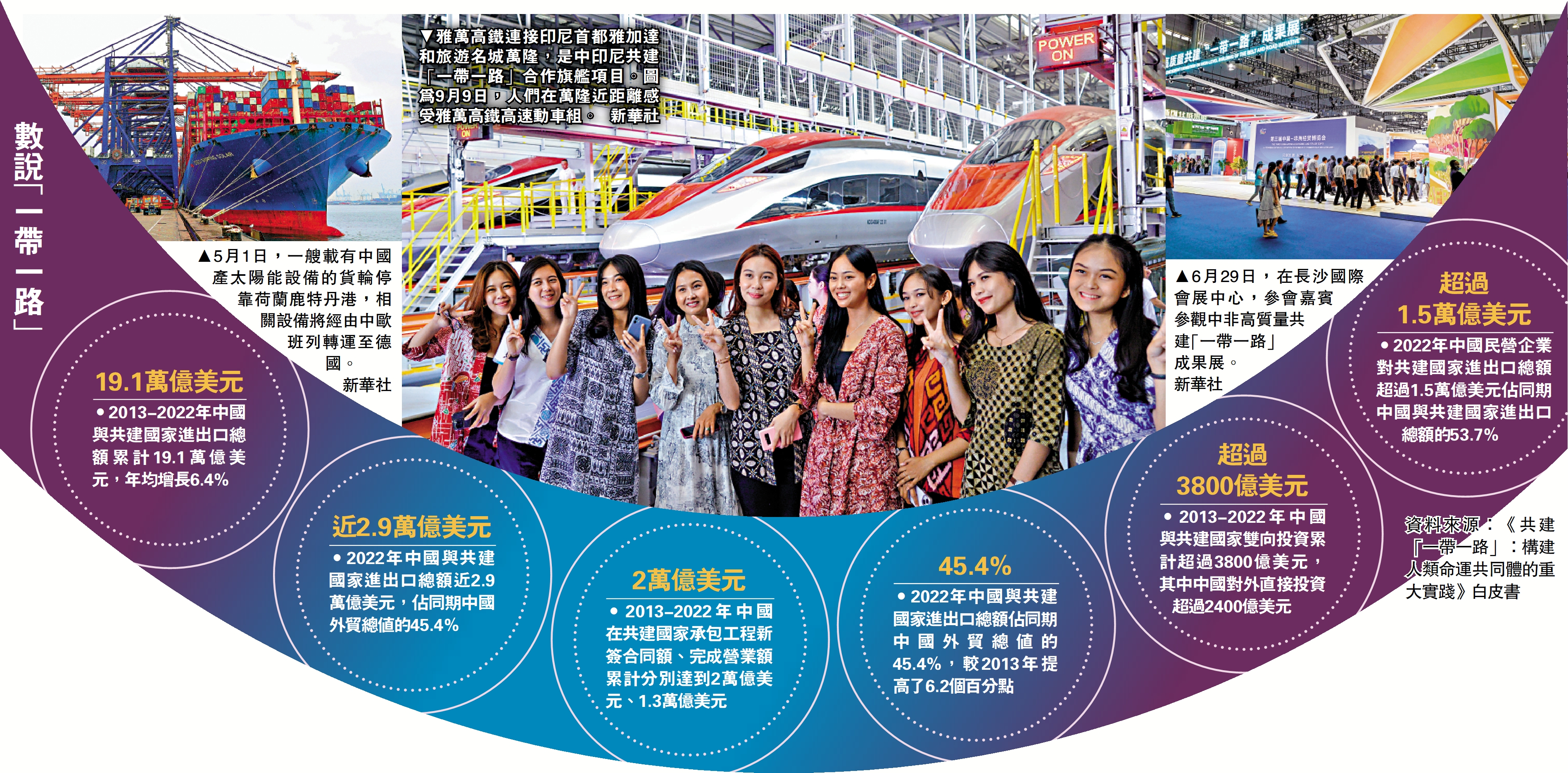 白皮書稱,10年來,在各方的共同努力下,共建「一帶一路」從中國倡議走向國際實踐,從理念轉化為行動,從願景轉變為現實,從謀篇布局的「大寫意」到精耕細作的「工筆畫」,取得實打實、沉甸甸的成就,成為深受歡迎的國際公共產品和國際合作平台。
