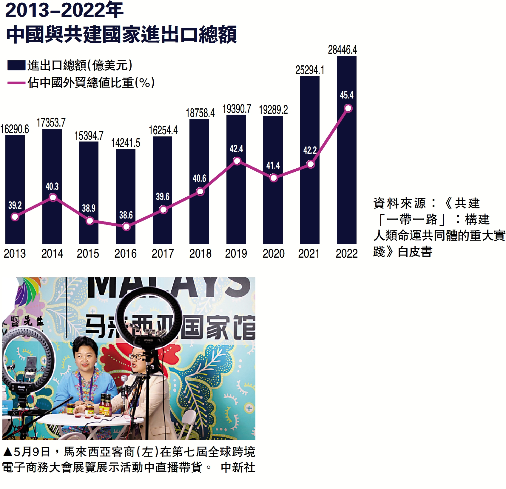 白皮書說,10年來,共建「一帶一路」不僅給相關國家帶來實實在在的利益,也為推進經濟全球化健康發展、破解全球發展難題和完善全球治理體系作出積極貢獻,開闢了人類共同實現現代化的新路徑,推動構建人類命運共同體落地生根。
