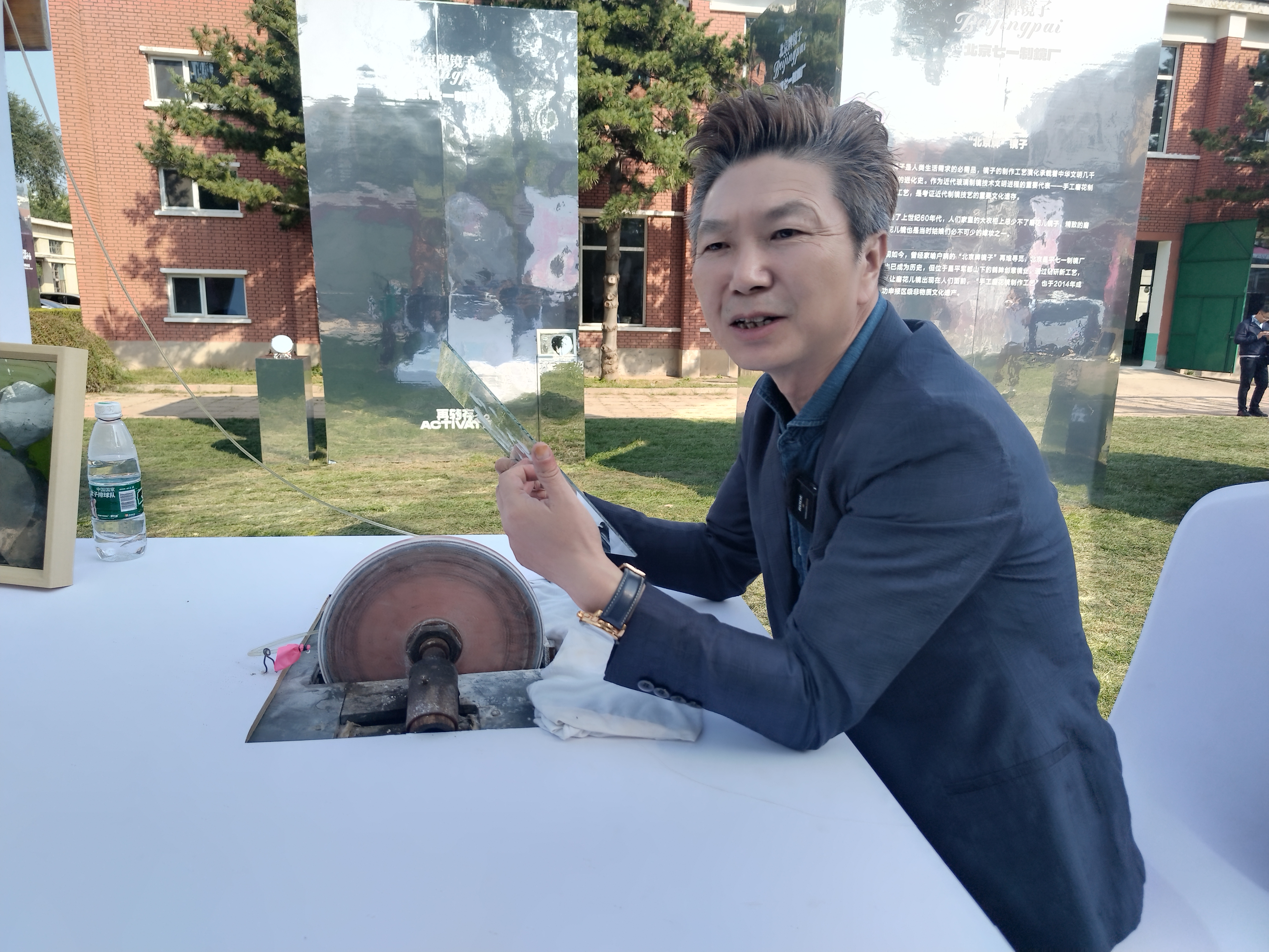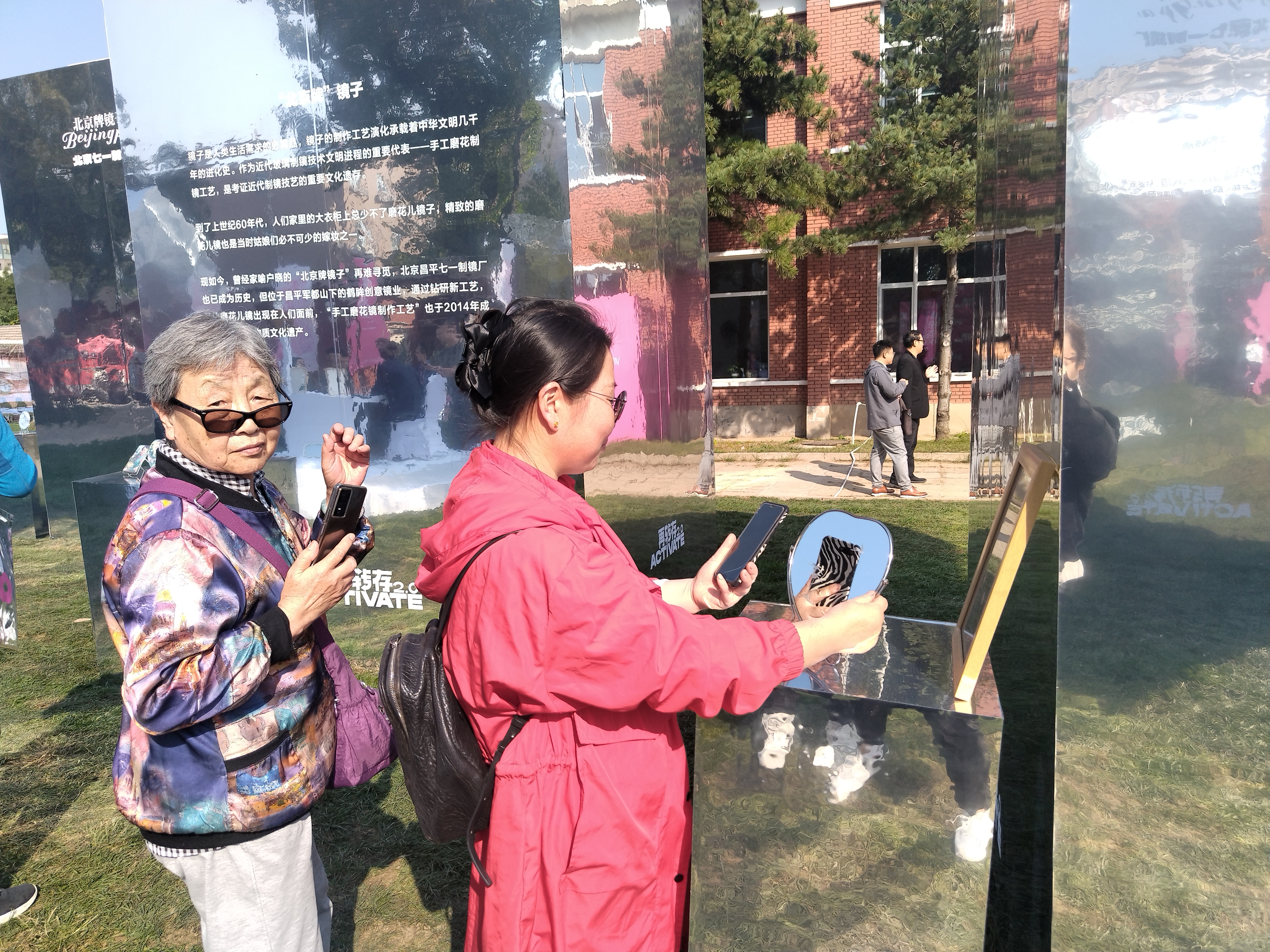 在活動現場的「平鏡時光」七一制鏡廠互動展上,一款款復古懷舊的北京牌磨花鏡吸引了與會者的目光。劉迎春一邊介紹北京磨花鏡的歷史,一邊現場演示了磨花鏡技藝的精巧之處。新潮的裝置與古老廠址、傳統手藝相融合帶來沉浸式展覽體驗,吸引廣大市民來到歷史感與未來感交織的昔日磨花鏡製作廠區參觀打卡,在城市過往的回憶中逐漸理解城市更新的現實意義。老手藝人古法制鏡工藝與流程更是吸引了許多年輕人圍觀。