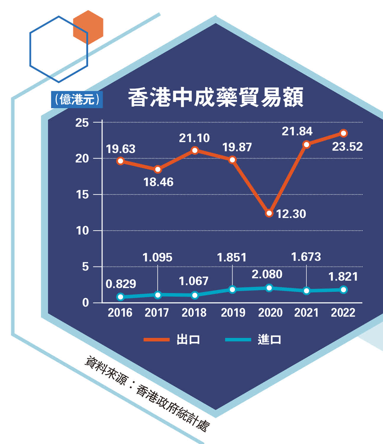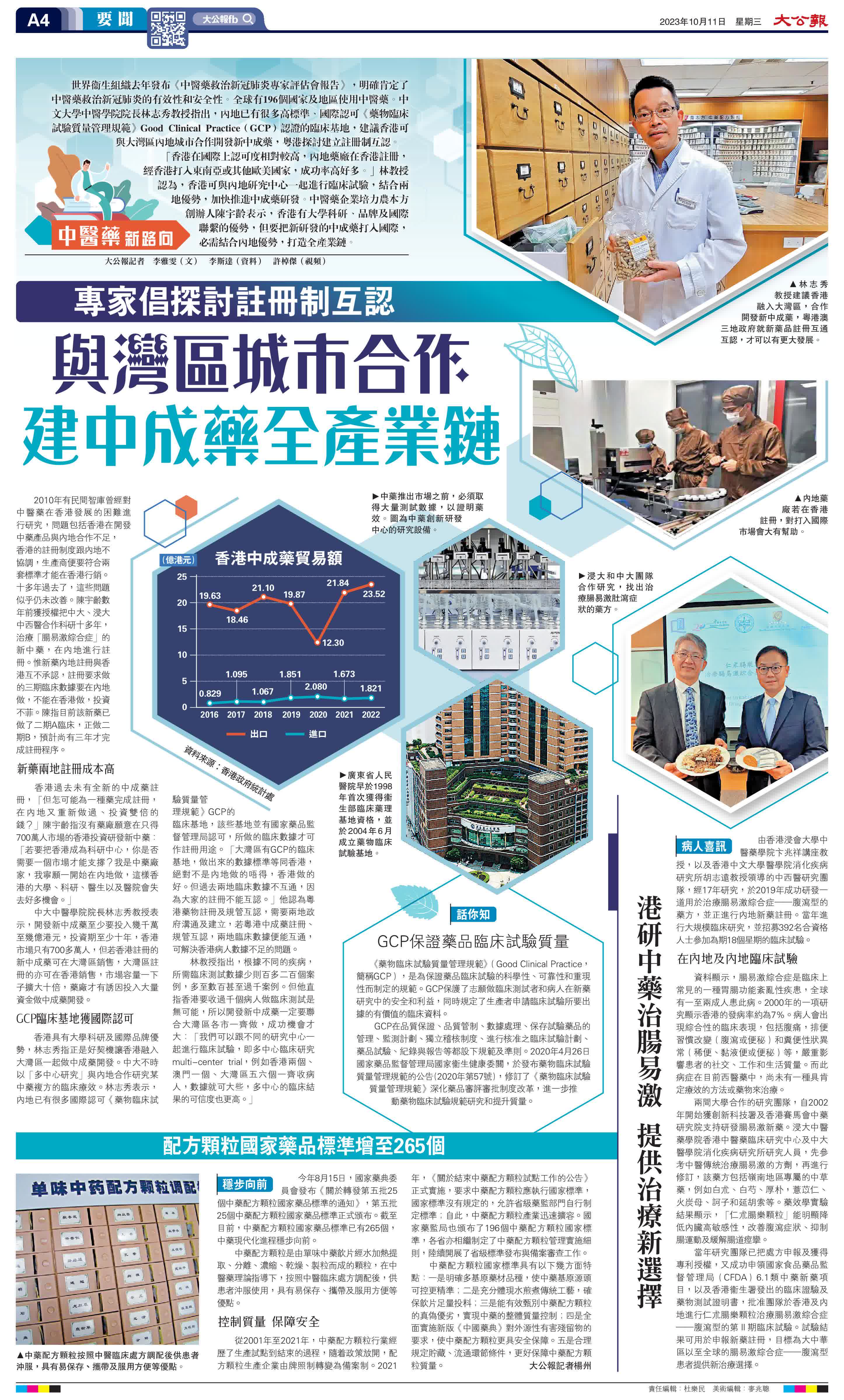 中大中醫學院院長林志秀教授表示,開發新中成藥至少要投入幾千萬至幾億港元,投資期至少十年,香港市場只有700多萬人,但若香港註冊的新中成藥可在大灣區銷售,大灣區註冊的亦可在香港銷售,市場容量一下子擴大十倍,藥廠才有誘因投入大量資金做中成藥開發。