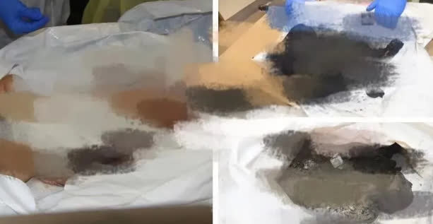 請原諒,看了這些圖片,我不由倒吸一口涼氣,想了再三,還是別清晰貼出來了,都打了厚厚的馬賽克,隱約可以看到一個模糊樣子,我簡單用文字描述一下吧。