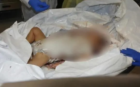 都是與嬰兒有關,一張是嬰兒的屍體,可憐的孩子,還穿着紙尿褲,頭部血跡斑斑;;另兩張,嬰兒的屍體,被燒得面目全非,成了黑色炭團。