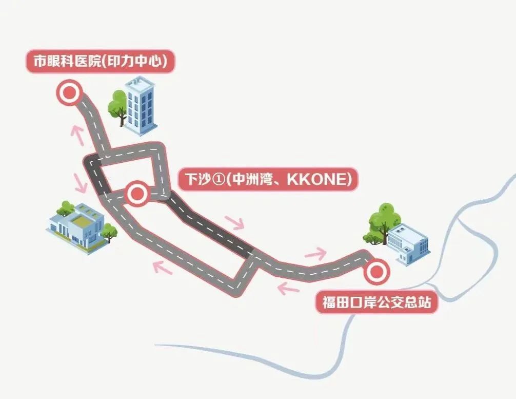 停靠站點:福田口岸公交總站、下沙①、市眼科醫院