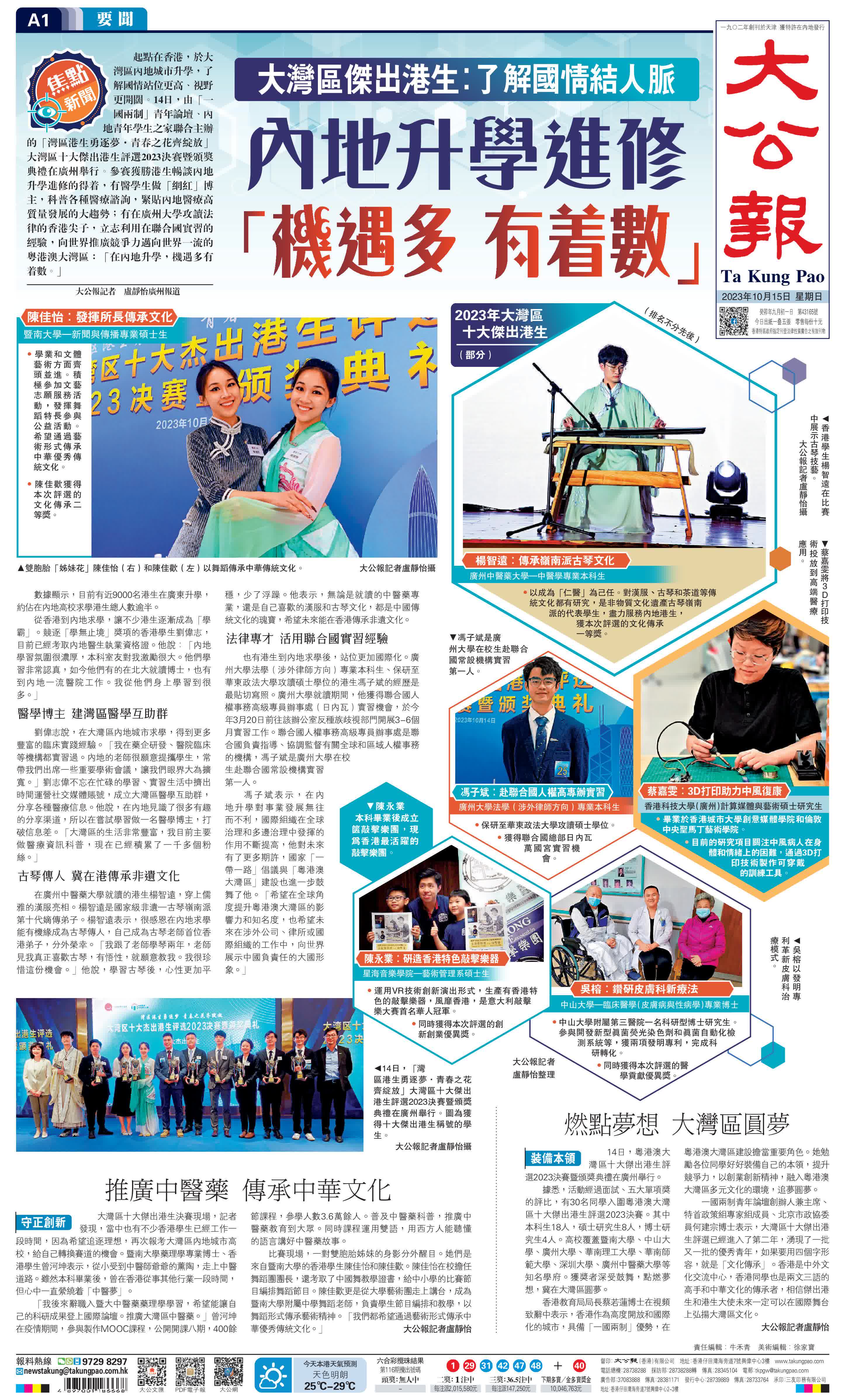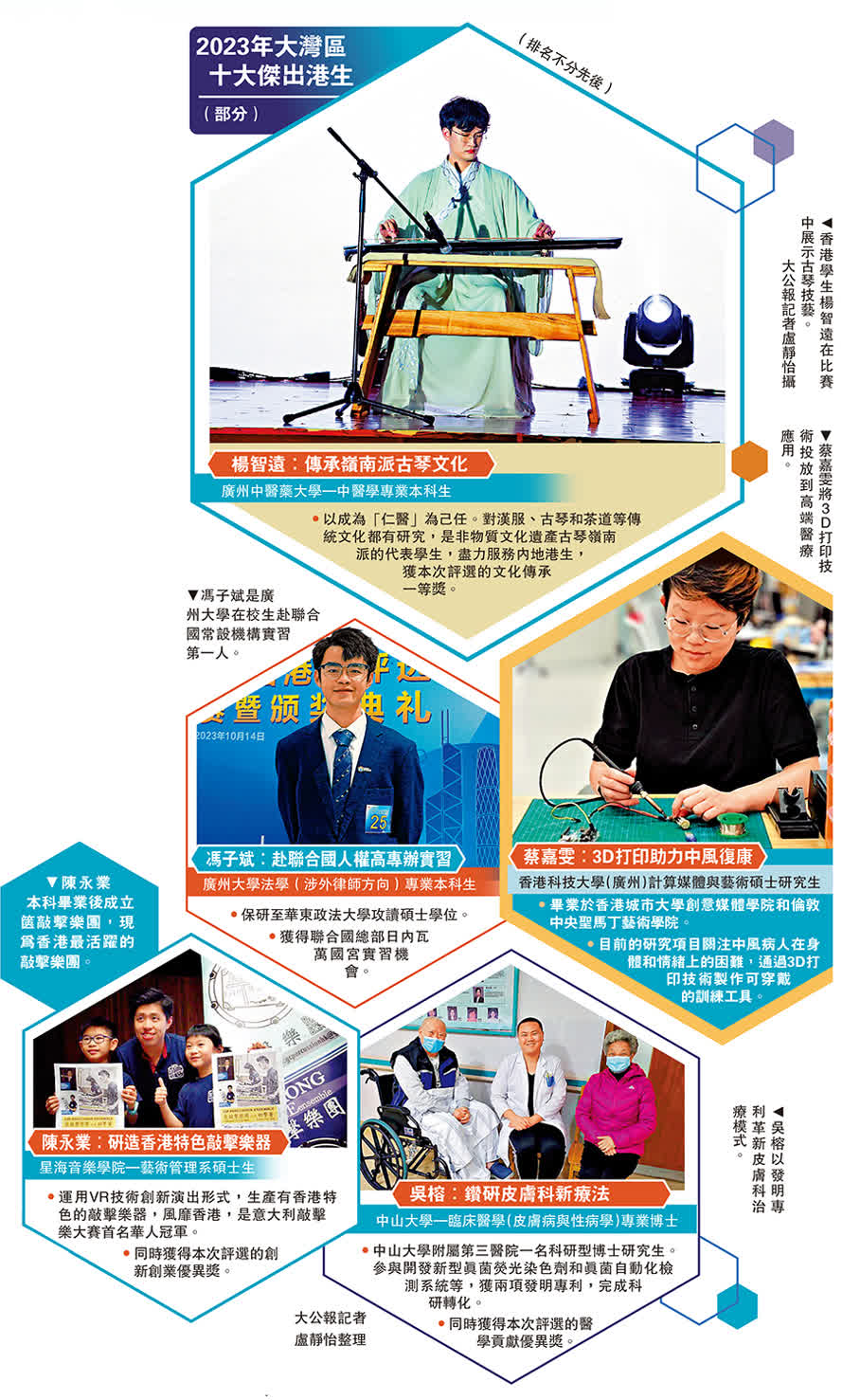 (大公報 記者 盧靜怡 廣州報道)起點在香港,於大灣區內地城市升學,了解國情站位更高、視野更開闊。14日,由「一國兩制」青年論壇、內地青年學生之家聯合主辦的「灣區港生勇逐夢·青春之花齊綻放」大灣區十大傑出港生評選2023決賽暨頒獎典禮在廣州舉行。參賽獲勝港生暢談內地升學進修的得着,有醫學生做「網紅」博主,科普各種醫療諮詢,緊貼內地醫療高質量發展的大趨勢;有在廣州大學攻讀法律的香港尖子,立志利用在聯合國實習的經驗,向世界推廣競爭力邁向世界一流的粵港澳大灣區:「在內地升學,機遇多有着數。」