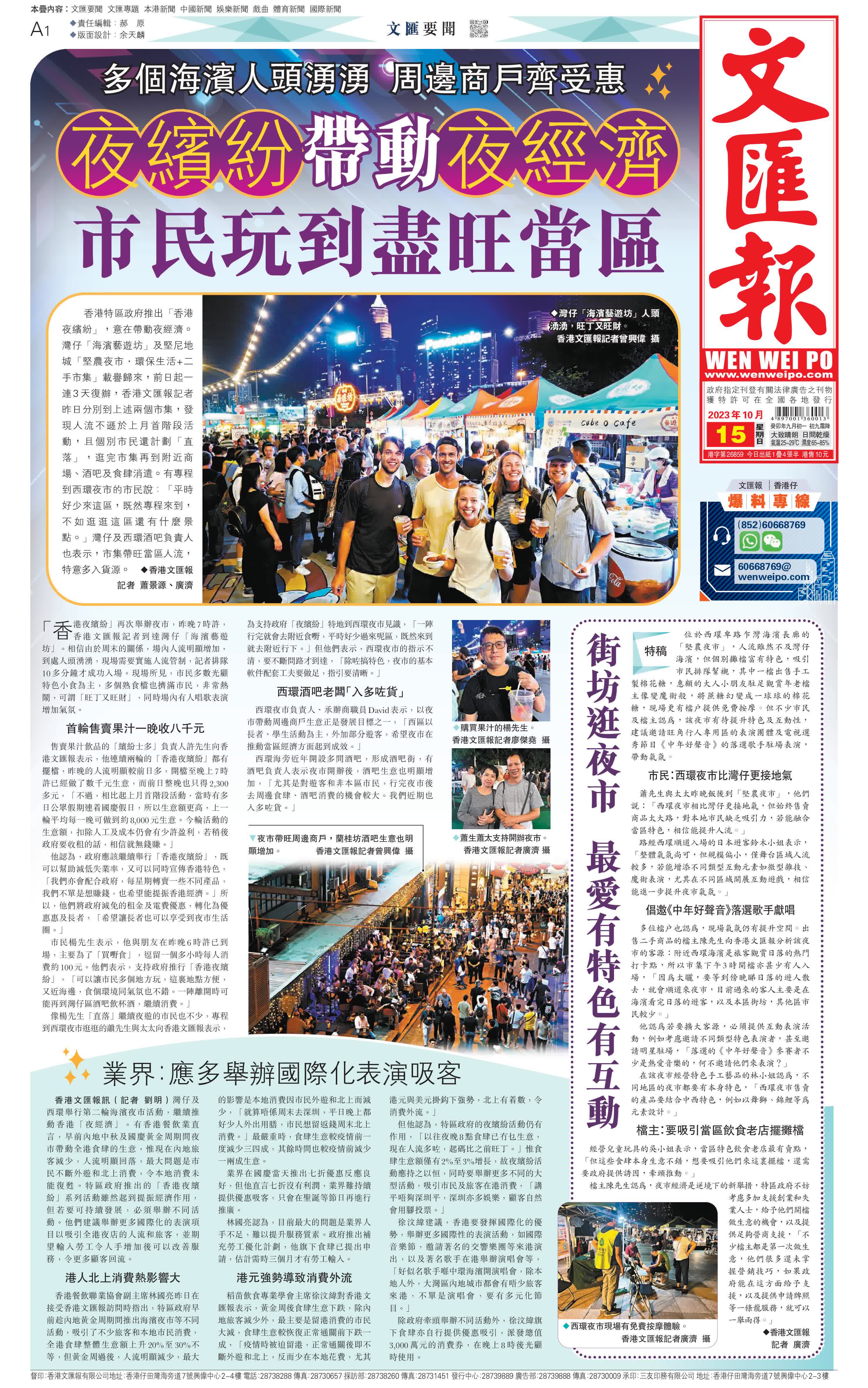 (來源:香港文匯報A01:要聞 2023/10/15)