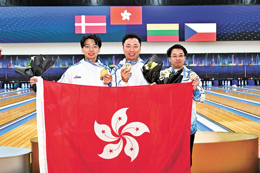 中國香港代表隊在決賽面對丹麥組合,先以213:203拿下首局,第2局以182:226被追和,在決勝局中國香港隊勢如破竹,首9格全部打出全中,最後以265:213擊敗對手,繼2017年後再次在世界保齡球錦標賽三人賽中奪得金牌。