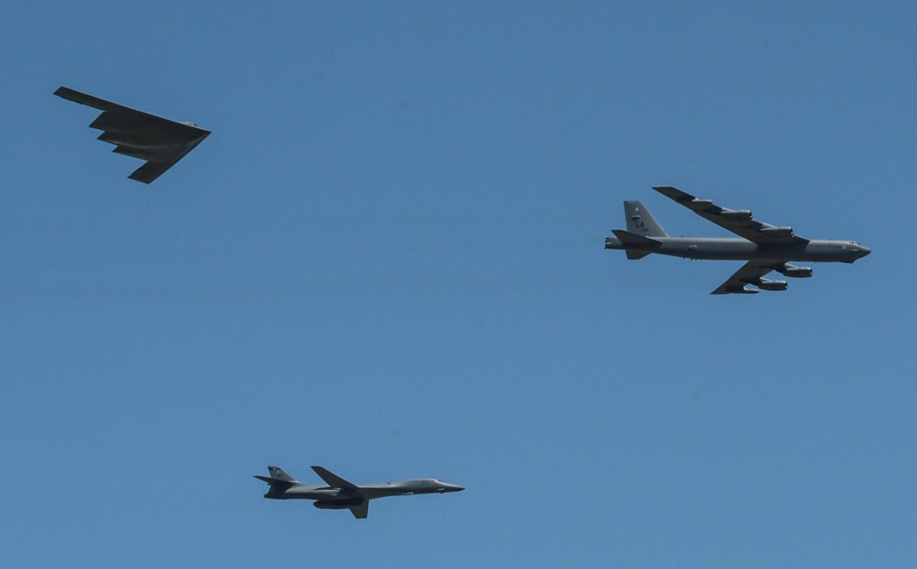 報道稱,B-52與B-1B「槍騎兵」、B-2「幽靈」一併被認為是美國空軍最具代表性的戰略轟炸機。其中B-1B具備隱形功能,曾於2016年9月在韓國烏山空軍基地着陸。