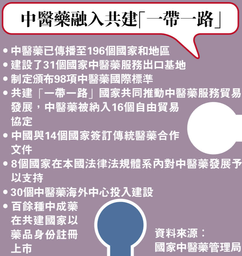 據來自國家中醫藥管理局的數據顯示,目前中醫藥已傳播至196個國家和地區,在共建「一帶一路」國家建設30個中醫藥海外中心,全球治療人數已超世界總人口1/3。而隨着中醫藥與當地民眾的交集日益密切,中醫藥正在成為「一帶一路」沿線國家和地區健康時尚的「代名詞」。