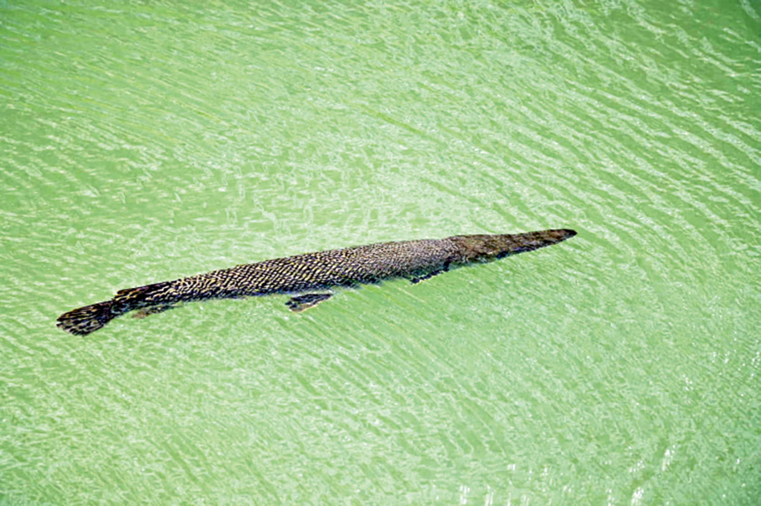 「福鱷」是北美洲最大的淡水魚之一,又名鱷雀鱔、大雀鱔,牠的名字源於擁有跟鱷魚一樣的短吻,和兩排匕首般鋒利的牙齒,腹部則較為淺色,體型最長可達到兩米,「福鱷」相當雜食,會吃掉棲息水域的其他魚類,在內地「福鱷」被視為外來入侵物種。