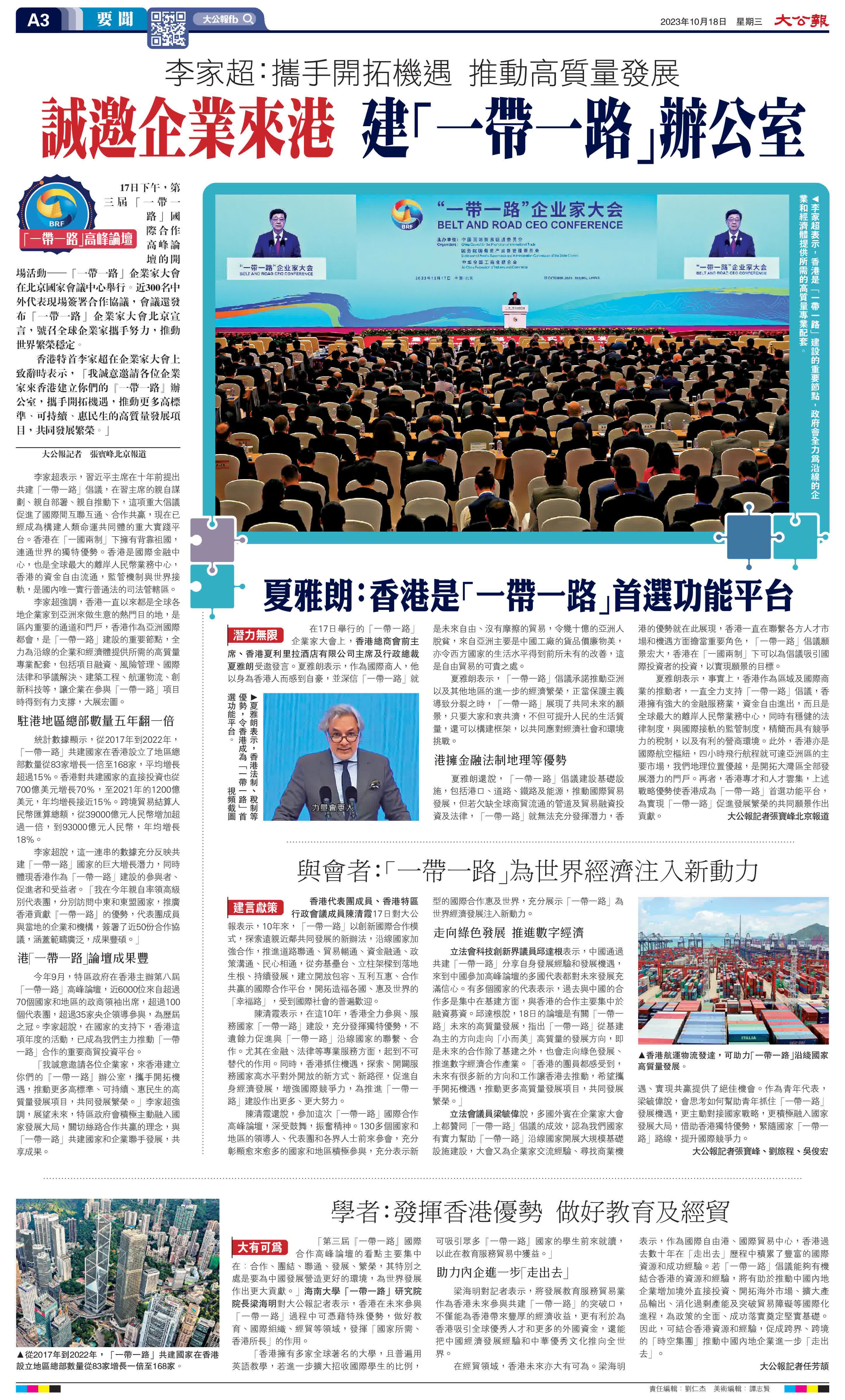 (來源:大公報A3:要聞 2023/10/18)