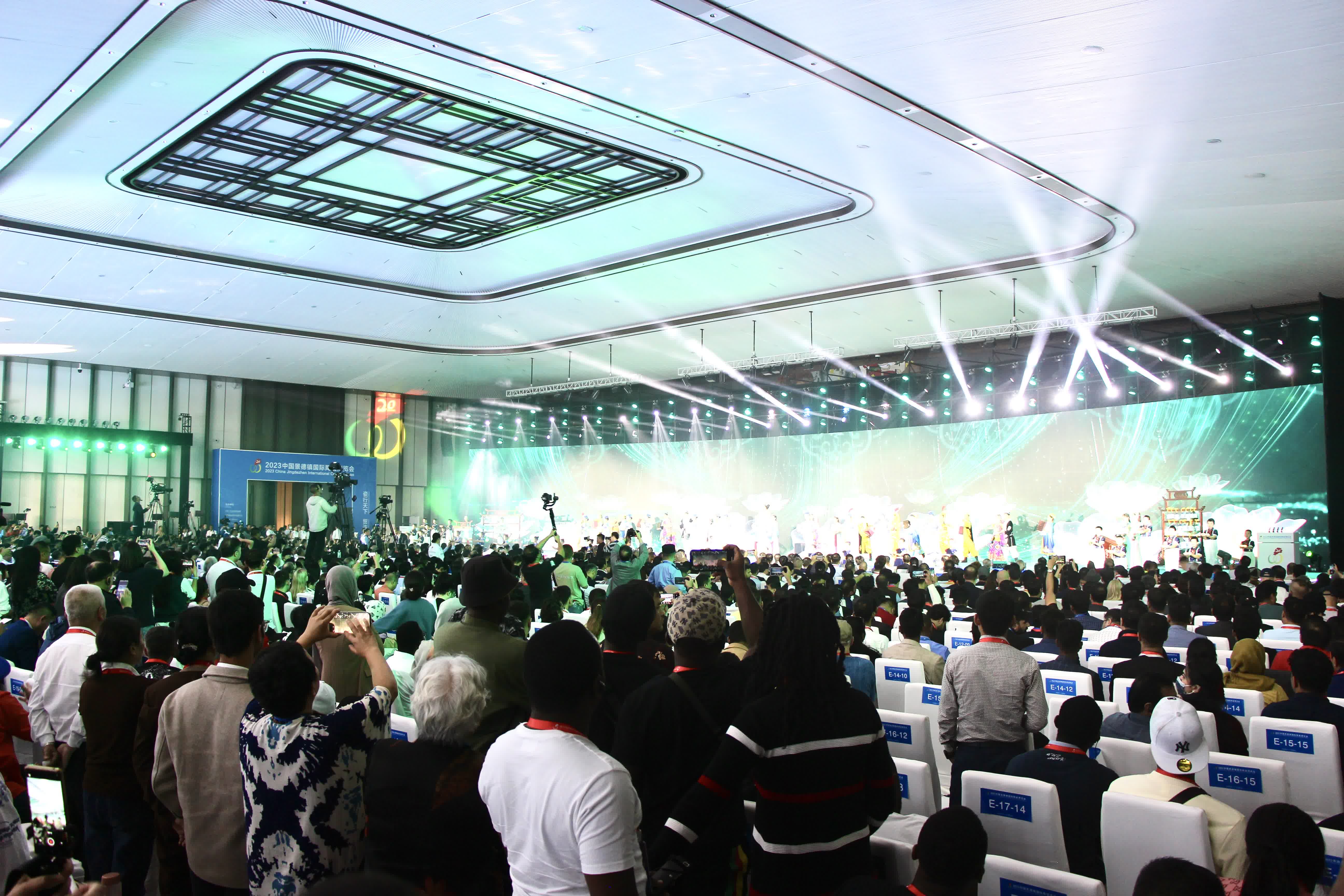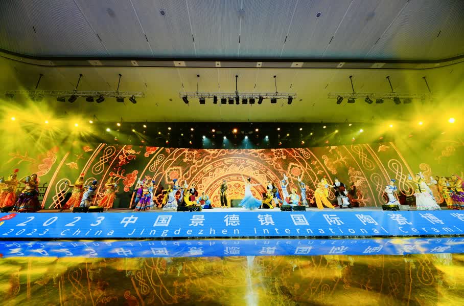 10月18日上午,隨着沉浸式視聽盛宴《炫彩世界 china之旅》文藝節目的開場,2023中國景德鎮國際陶瓷博覽會開幕。