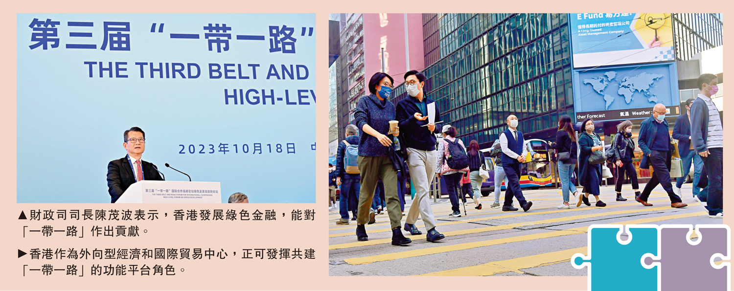 陳茂波相信,香港對共建「一帶一路」發展綠色金融,可以發揮很大作用。2022年,在港發行的綠債超過800億美元,發行量是整個亞洲的三分之一。香港匯聚國際資金,以及人才和頂級的金融機構,因此在標準制定和綠色項目的認證方面,可發揮一定功能。