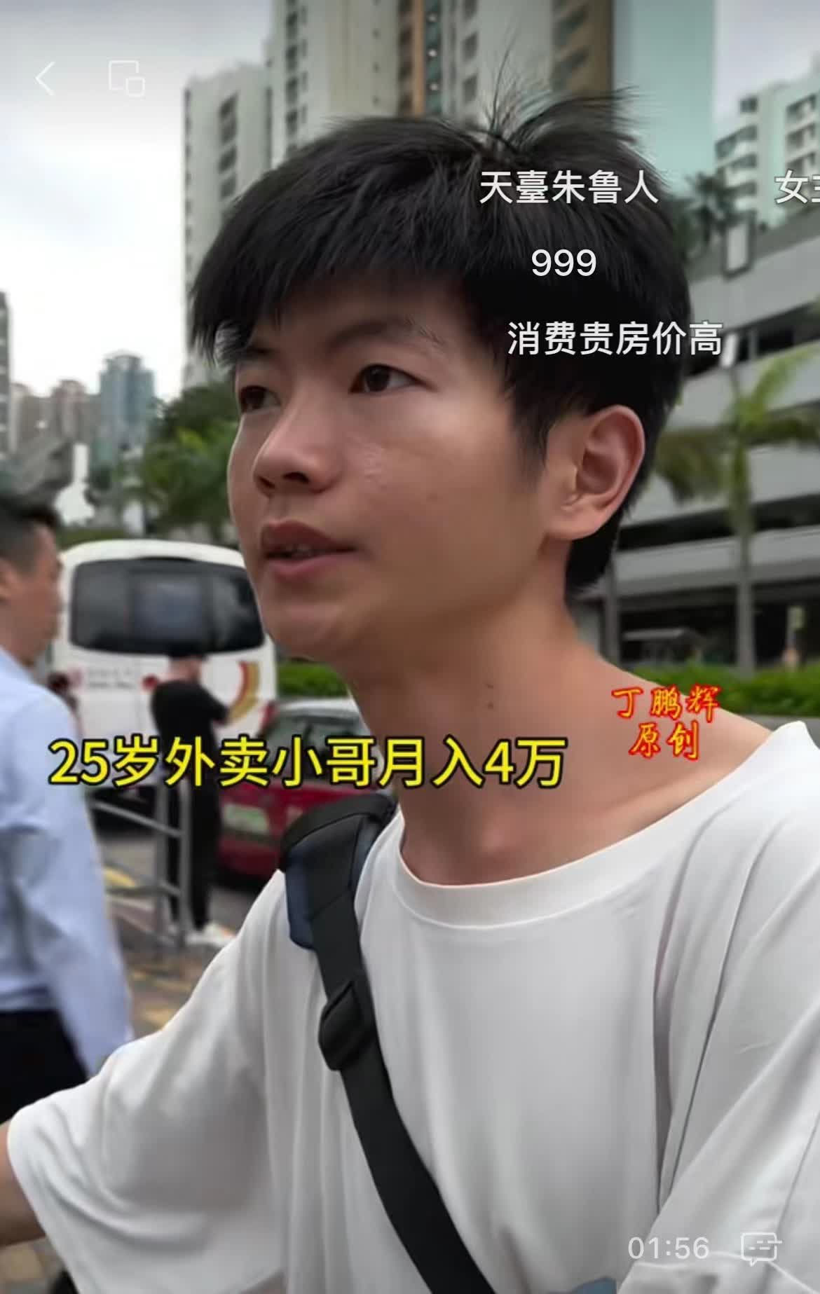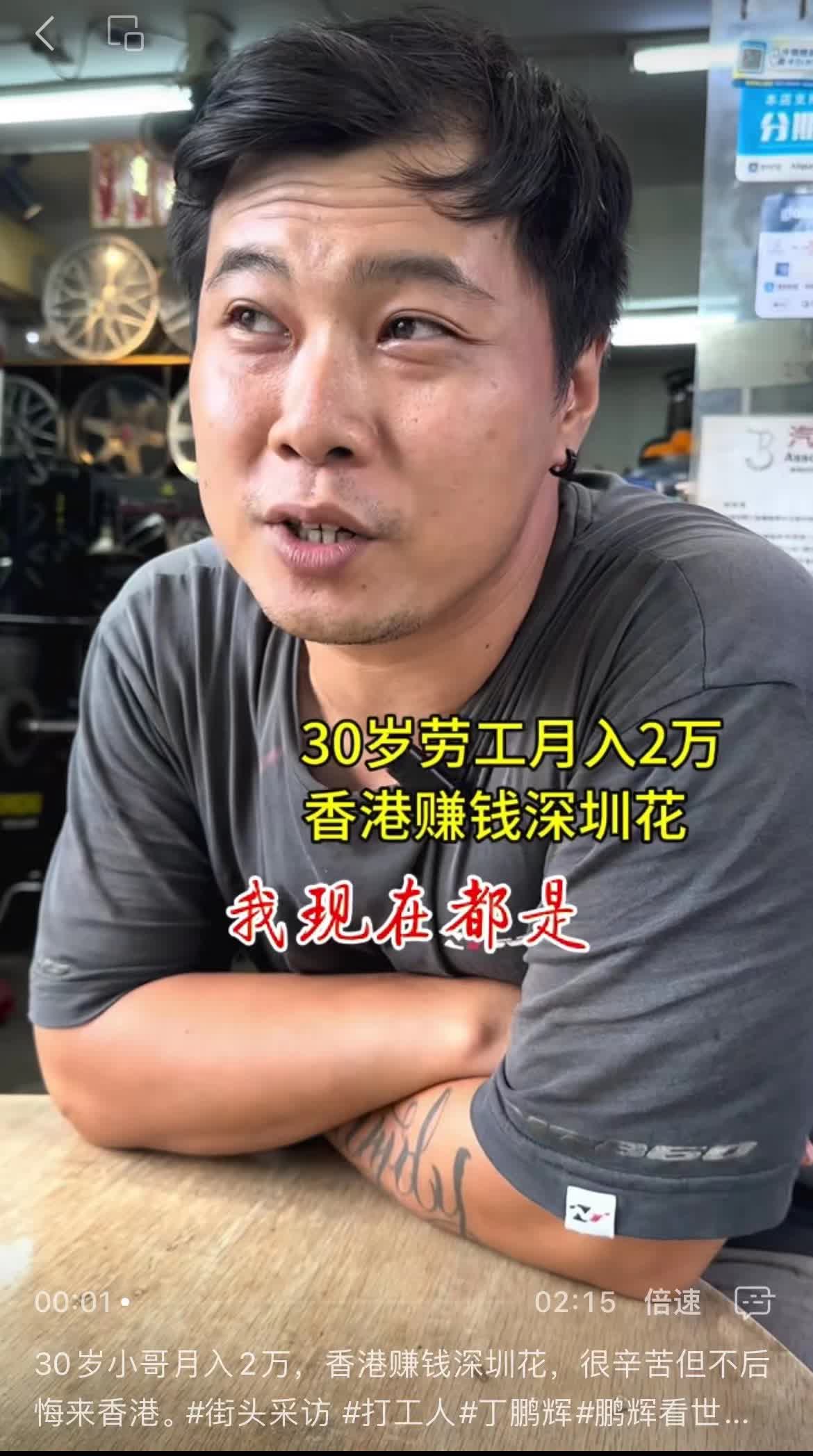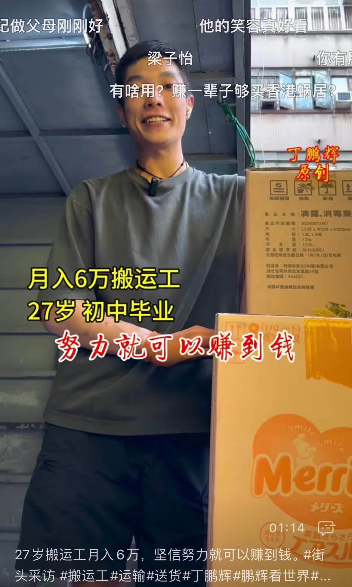 有一位在香港打工的內地視頻博主「丁鵬輝在香港」,採訪了香港打工仔的月薪。