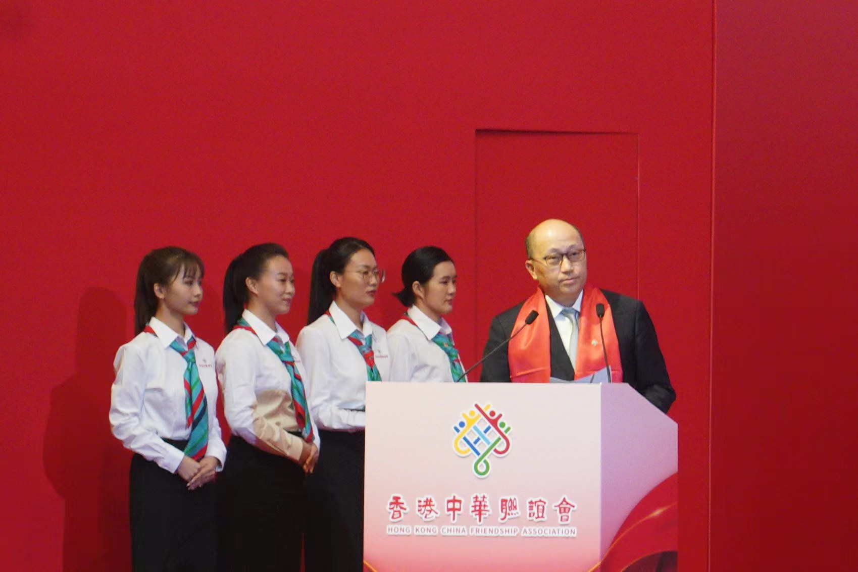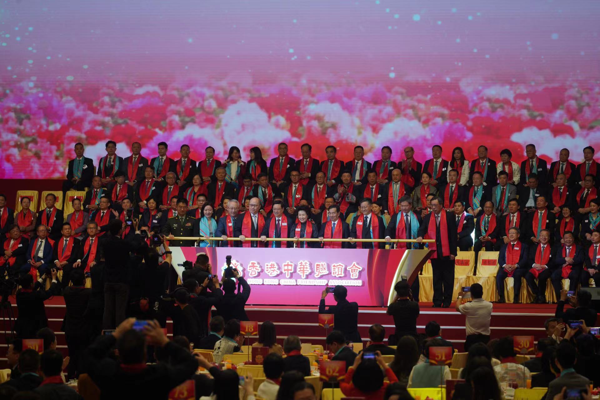 中央政府駐港聯絡辦副主任盧新寧、駐港國家安全公署副署長李江舟、外交部駐港特派員公署署理特派員李永勝、解放軍駐港部隊政治部副主任王志學、香港立法會主席梁君彥,香港中華聯誼會會員、香港各界人士以及內地部分省市的代表等出席典禮。