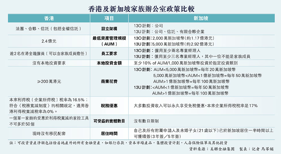 強攻家族辦公室方面,美聯金融集團營運及銷售發展董事梁柏基指,現時本港吸引家辦的政策與新加坡比較,本港在移民配套上沒有明確安排,建議新施政報告可提供更明確方向,甚至在優化安排上更勝新加坡。