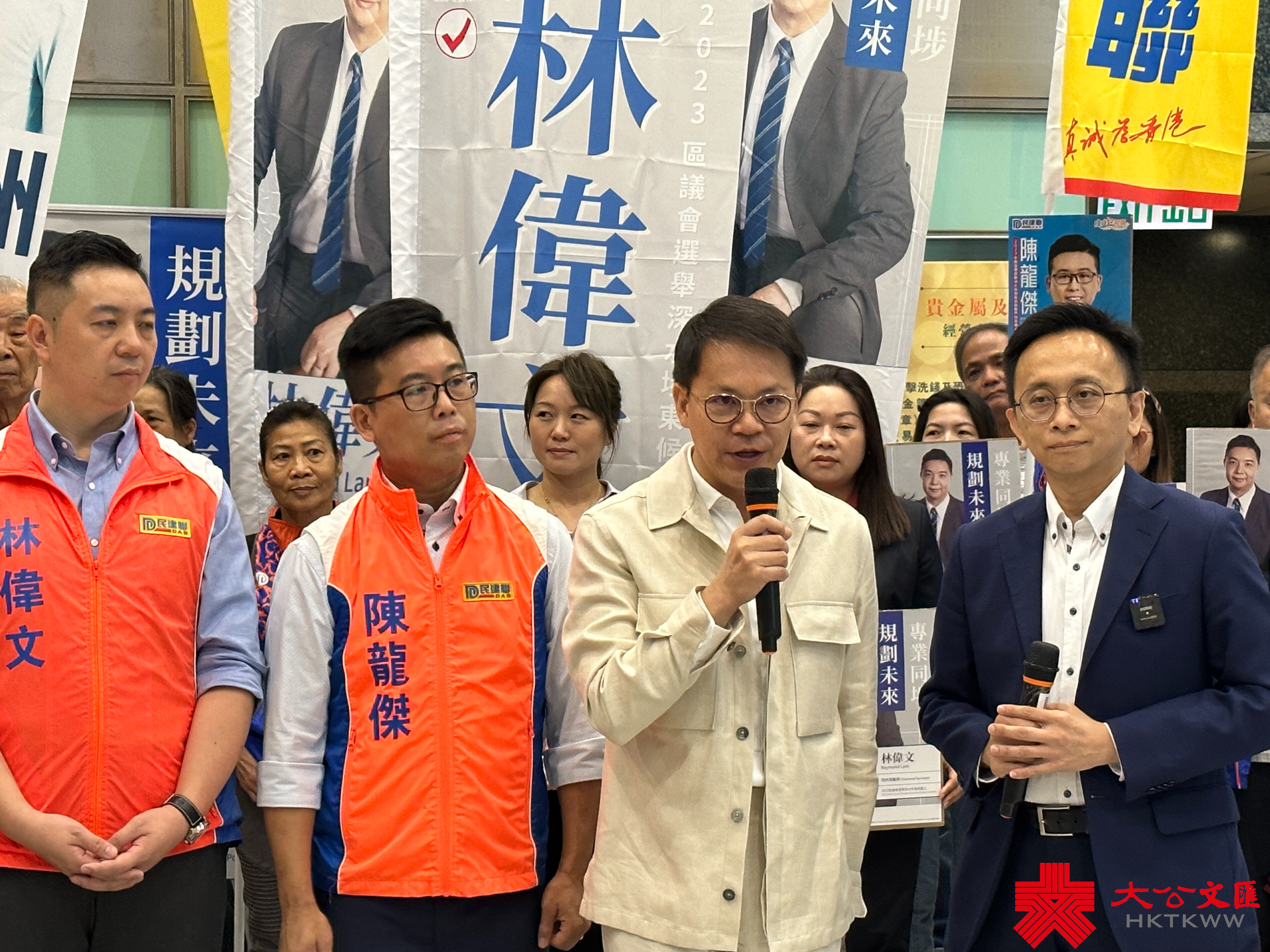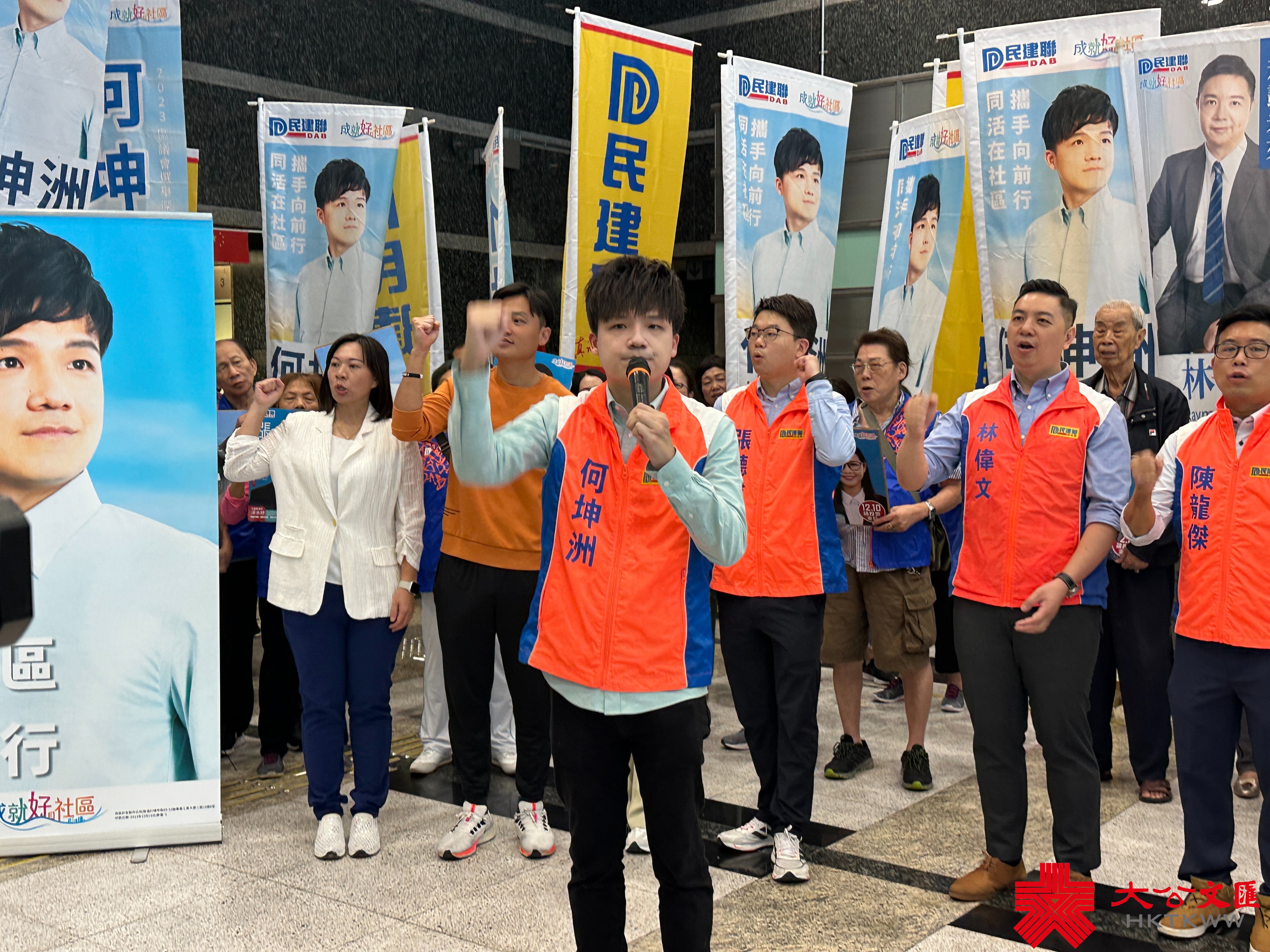 民建聯深水埗團隊派出何坤洲、林偉文參加地區選舉。另外,吳婉秋、張德偉、陳龍傑參加地區委員會界別選舉。民建聯主席陳克勤、立法會議員鄭泳舜出席為參選人打氣。