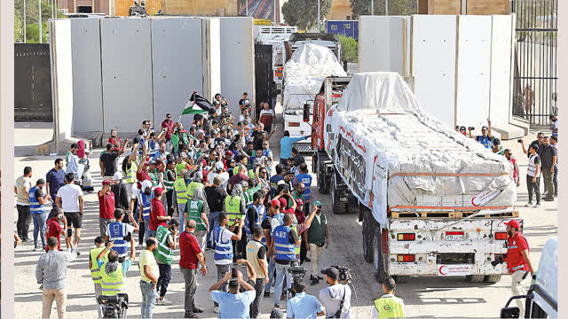 聯合國秘書長古特雷斯在講話中呼籲通過「兩國方案」解決巴勒斯坦問題,並對20輛主要裝載醫藥援助物資的卡車當天從拉法口岸埃及一側進入加沙地帶表示歡迎。他強調,在埃及一側等待的援助卡車需要以大規模、可持續和安全的方式盡快駛入加沙地帶。