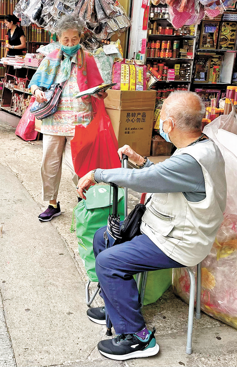90多歲高齡的陳先生與80多歲的妻子昨日到港島傳統紙紮店購買紙紮祭品。陳太表示,今次購買了約百多元的祭品,但並未與其他親友同在明天的重陽節往拜祭。由於大家拜祭時間不同,通常也是每個小家庭自行拜祭,沒有相約大堆人一起。她說,自己居於離島區,距祭祖地點非常近,在疫情期間亦堅持祭祖,「可以直接行路到,戴口罩都要去拜。」