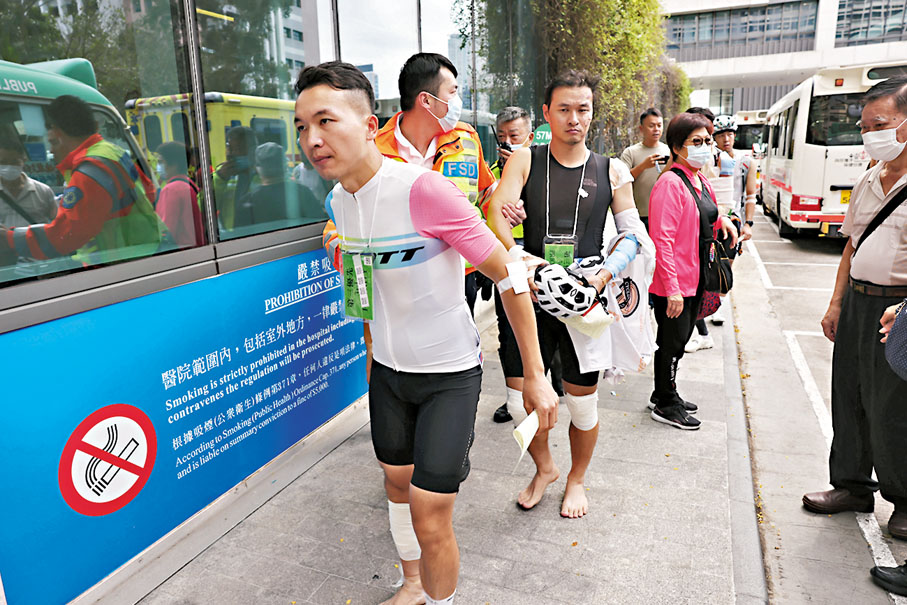昨日的單車節賽事發生多宗意外,至少釀成27人受傷送院。在「環粵港澳大灣區城市自行車挑戰賽(香港站)男子公路組」賽事,有參賽者在尖沙咀麼地道疑因賽道由三線變兩線,車輪意外觸碰路旁雪糕筒失事翻車,結果導致單車群發生「骨牌式」連環碰撞,釀成14人受傷送院,當中1人傷勢嚴重。意外初期,該賽事仍然繼續,直至約20分鐘後才暫停。單車總會事後表示安排合適,又指國際賽事都會有連鎖式意外發生,不影響日後辦賽。