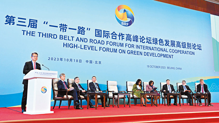 在促進綠色發展方面,香港已是亞洲領先的綠色金融中心,現正按國家「十四五」規劃全力建設國際創科中心,同時大力推動綠色科技及綠色金融中心的建設,可以助力共建「一帶一路」國家實現綠色發展。