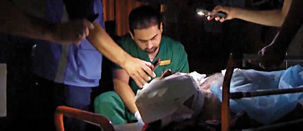 一段影片顯示,一名醫生在黑暗的病房中,只能借助手機手電筒的燈光為患者做手術,幾部手機同時多角度照明,以便讓醫生看清病人手臂上需要縫合的位置。由於缺乏燃料,這個醫院的醫生工作時只能依靠移動光源。