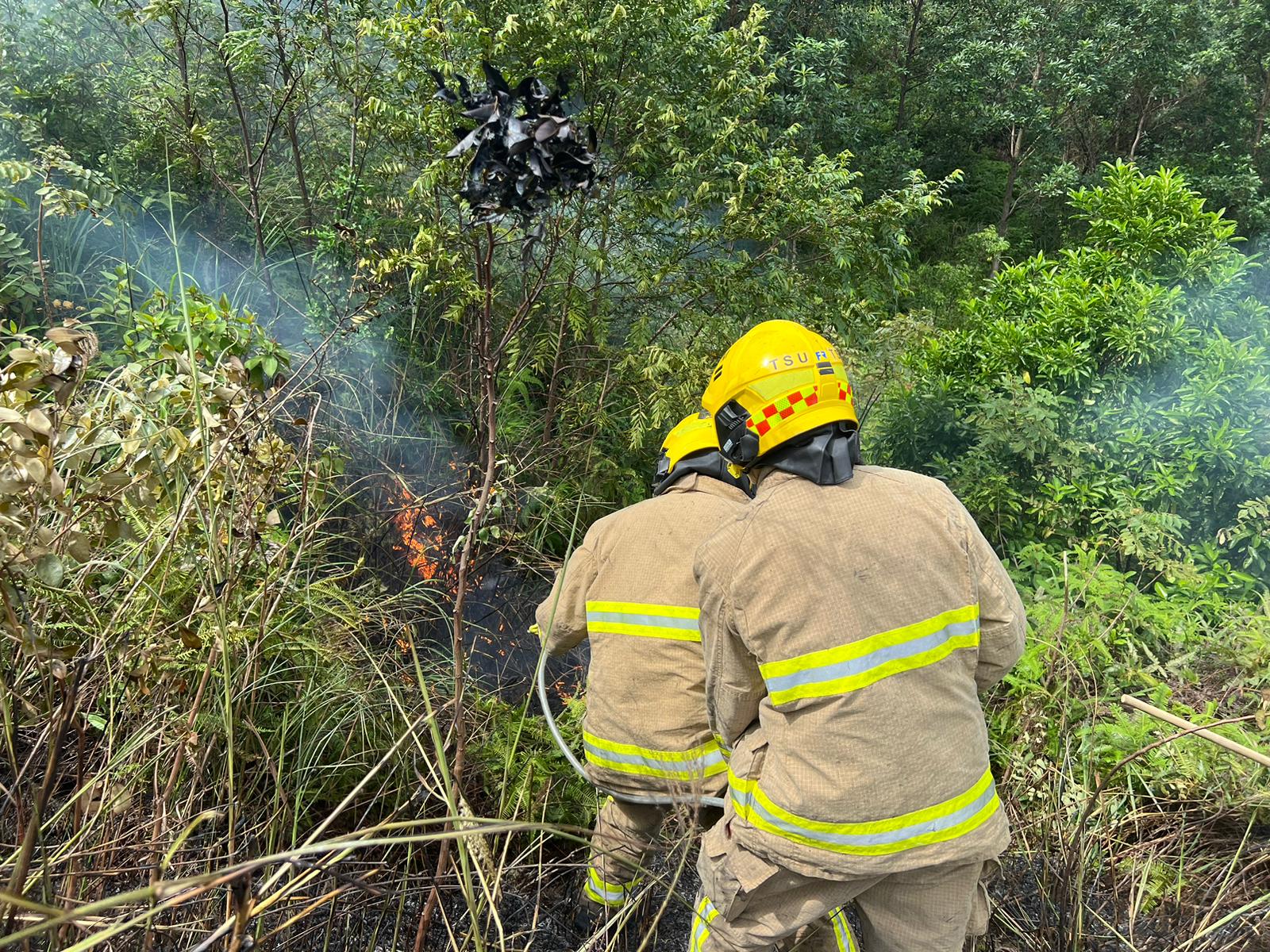 消防處表示,接獲多宗山火報告,正努力進行撲救,同時在多個山火黑點巡視,向叢林灑水減低山火發生機會。消防處提醒市民,大家掃墓拜祭時千萬不要留下火種,防止山林變山焚。