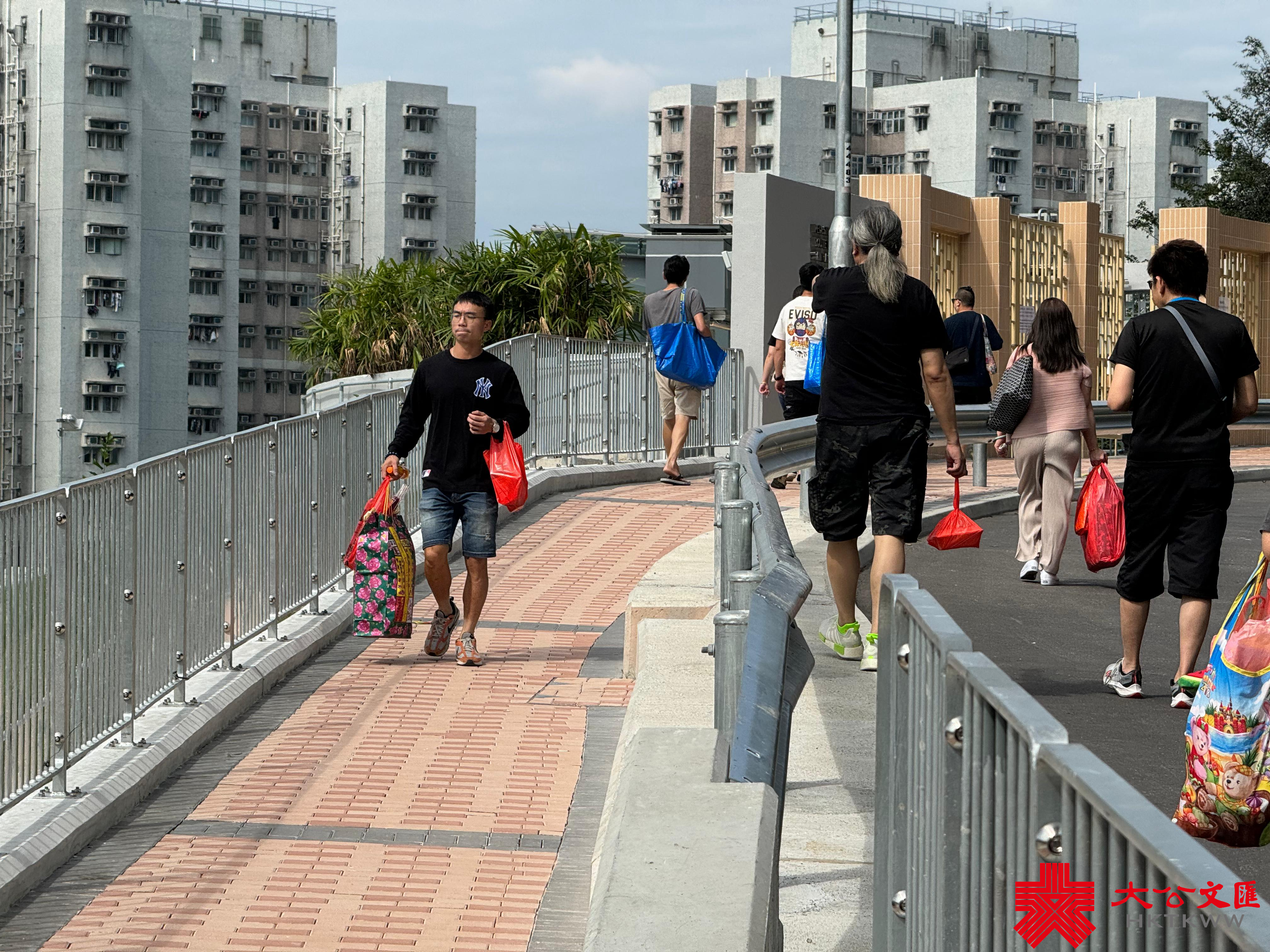 不過,由於今日並非重陽正日,記者目測雖然有不少人流,但相比往年仍然有減少,加上扶梯的啟用,切實起到紓緩人流的作用。前來祭拜先人的孝子賢孫中,有人獨自前來,也有一家老小共同前往,他們大多已自備祭花及祭品。
