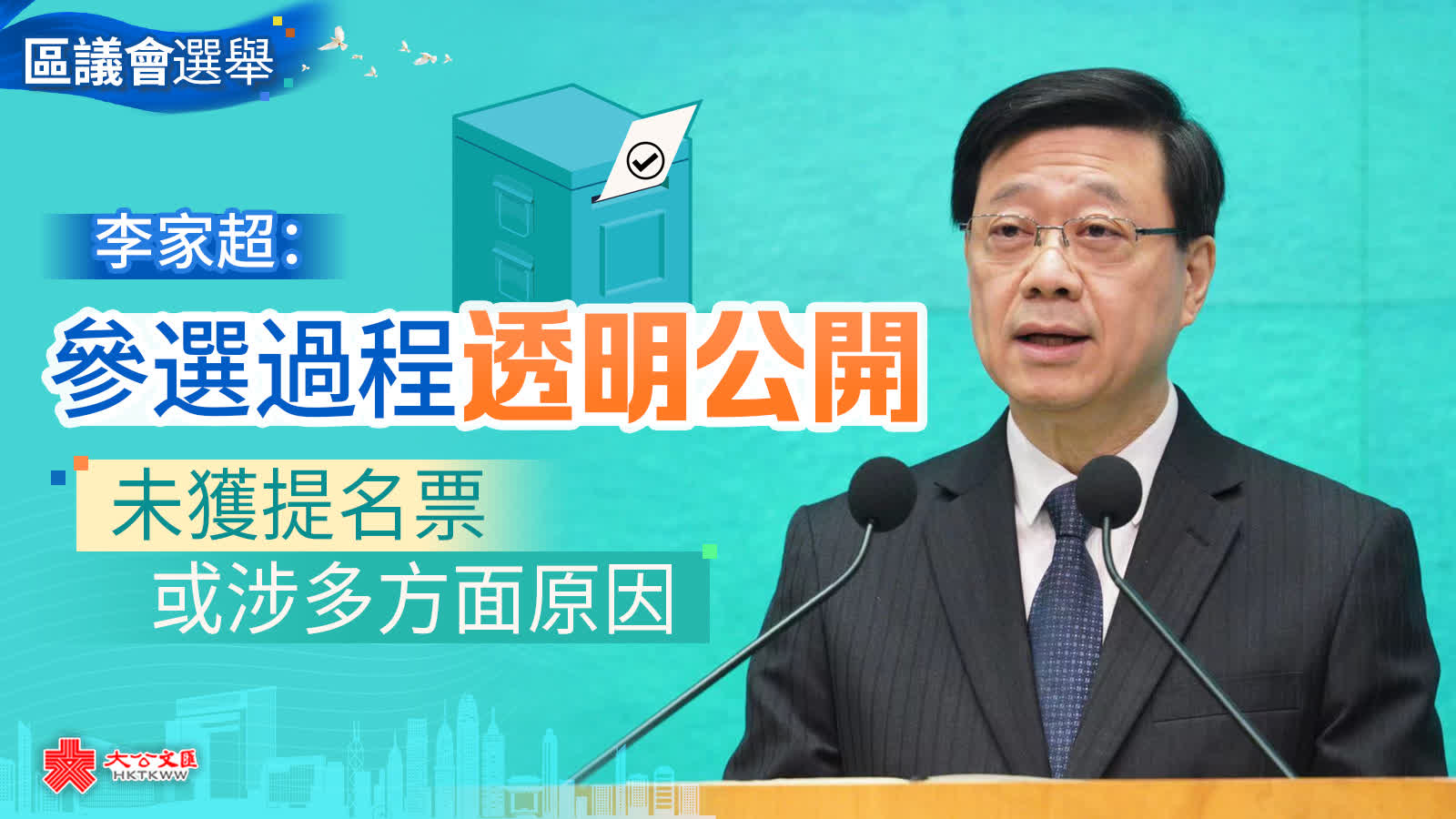 李家超指出,參選人要獲得足夠提名,是今次區議會選舉的法律規定,每個人都可以公平地用自己的方法去爭取提名人的提名票,爭不爭取到,在於提名人對有關人士的觀感和認識。提名人也有責任看他們是否符合參選人的基本要求,第一,他們是否為愛國愛港人士,第二,他們是否真誠擁護基本法、效忠香港特區。如果有人未拿到提名票,可能是多方面的原因,要研究是否自己出現問題。