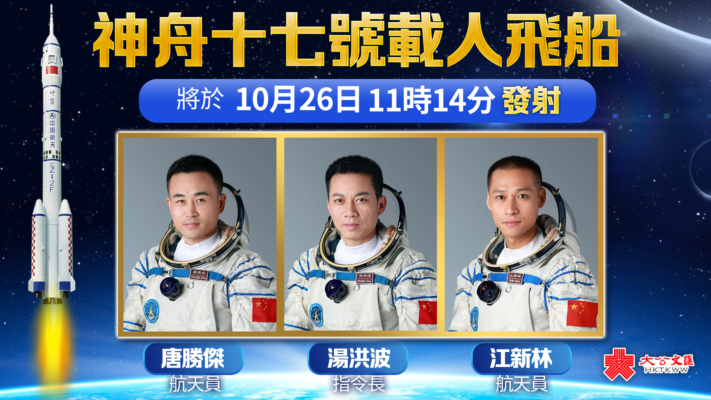 據中新網報道,神舟十七號載人飛行任務新聞發布會25日在酒泉衛星發射中心舉行。中國載人航天工程新聞發言人林西強在會上表示,經總指揮部研究決定,瞄準北京時間10月26日11時14分發射神舟十七號載人飛船,飛行乘組由航天員湯洪波、唐勝傑、江新林組成,湯洪波擔任指令長。