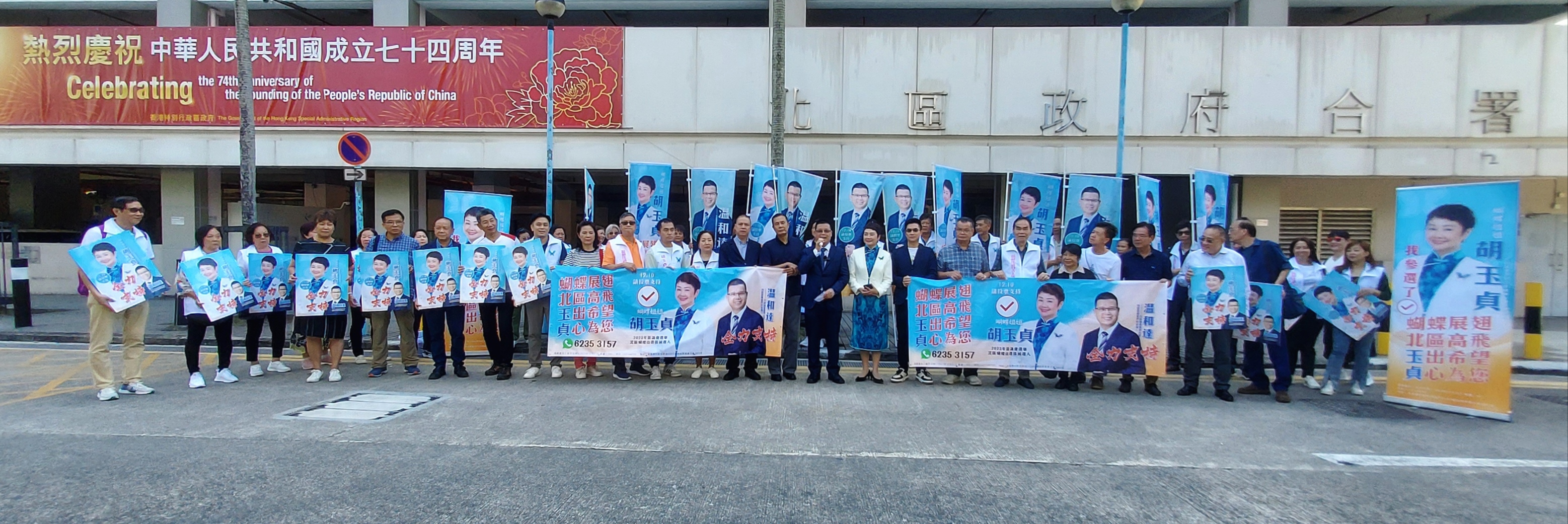 此外,參加誓師大會的在場人士高呼胡玉貞的競選口號:「蝴蝶展翅,北區高飛;玉出希望,貞心為你」,為12月10日的區議會選舉打響前哨戰。