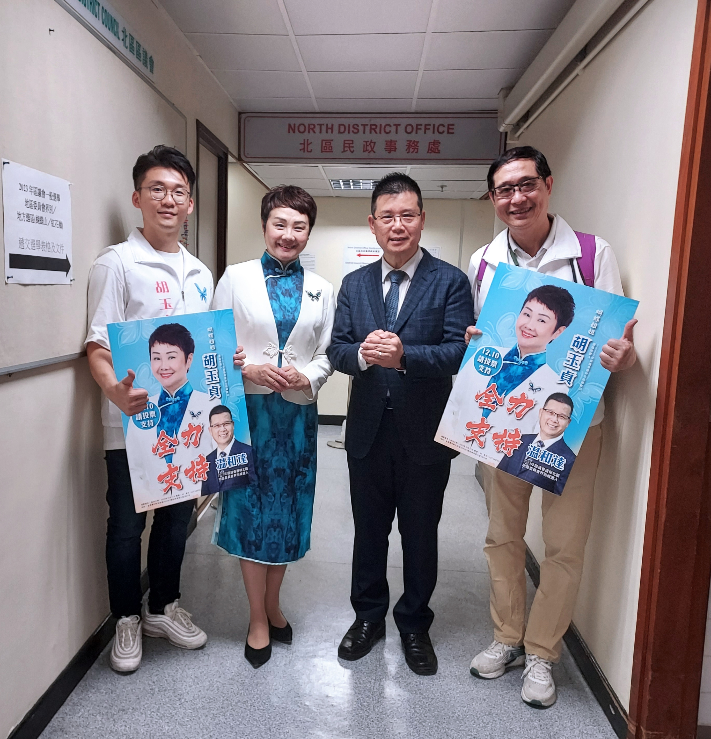 大公文匯全媒體報道,昨日(24日)下午2時,新界北區蝴蝶山選區一眾社區領袖及義工齊聚北區民政事務處,進行誓師大會及報名參選。獨立候選人胡玉貞宣布參選北區蝴蝶山選區地區直選,現任北區盛福選區區議員溫和達宣布參選北區地區委員會界別競逐連任。