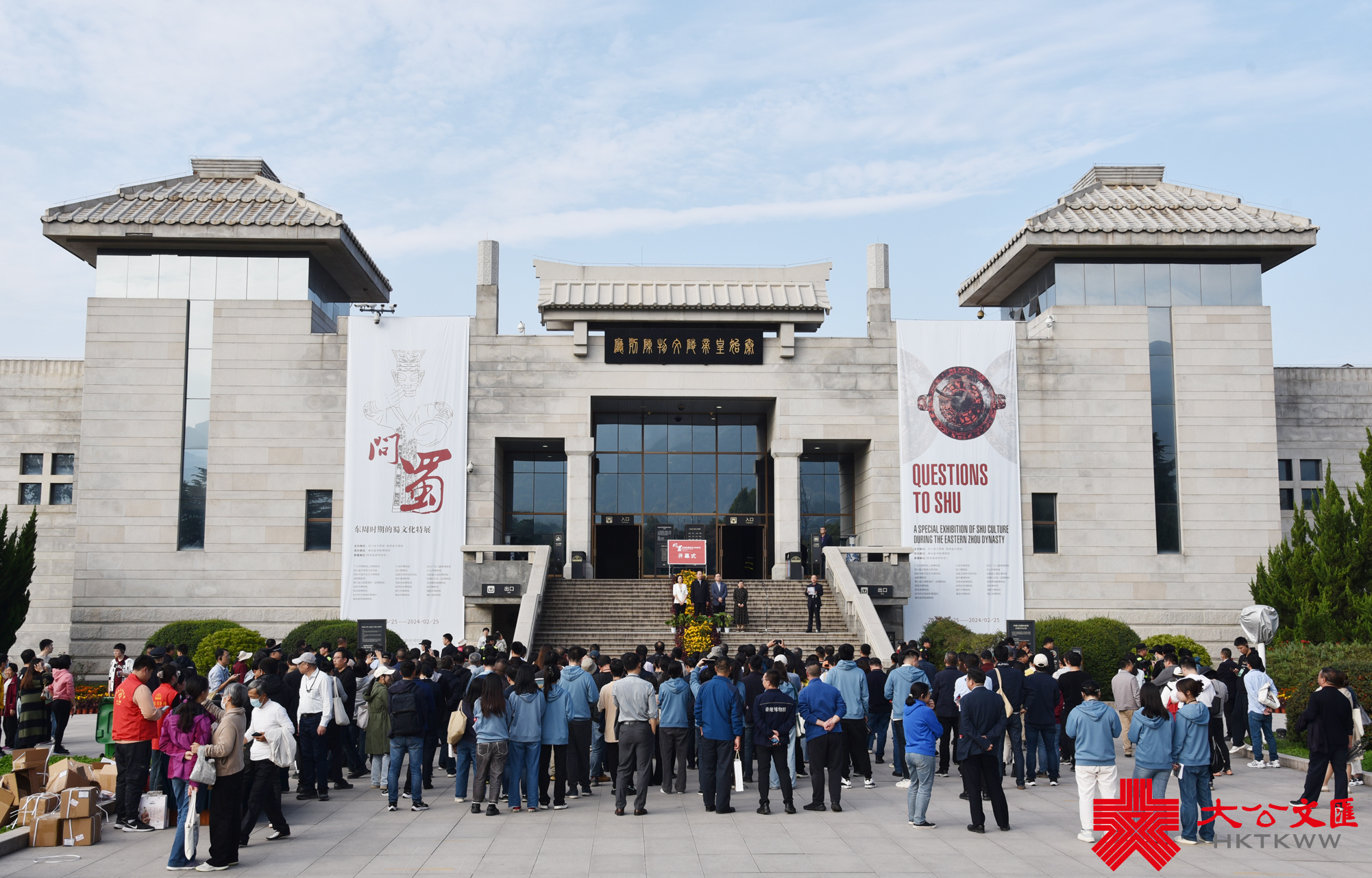 (大公文匯網記者 李陽波)形態誇張的青銅人頭像、神秘的跪坐銅人像、驚艷絕倫的太陽神鳥金飾、造型奇特的豬形漆盒……10月25日,「問蜀一一東周時期的蜀文化特展」在秦始皇帝陵博物院文物陳列廳正式開展。此次展覽匯聚了四川、湖北、陝西25家文博單位的300餘件展品,不僅清晰回答了古蜀文明「你是誰?」「你從哪裏來」「你去了哪裏?」等問題,同時更用實物展示了特立獨行的古蜀文明一步步匯入中華文明歷史長河的進程。