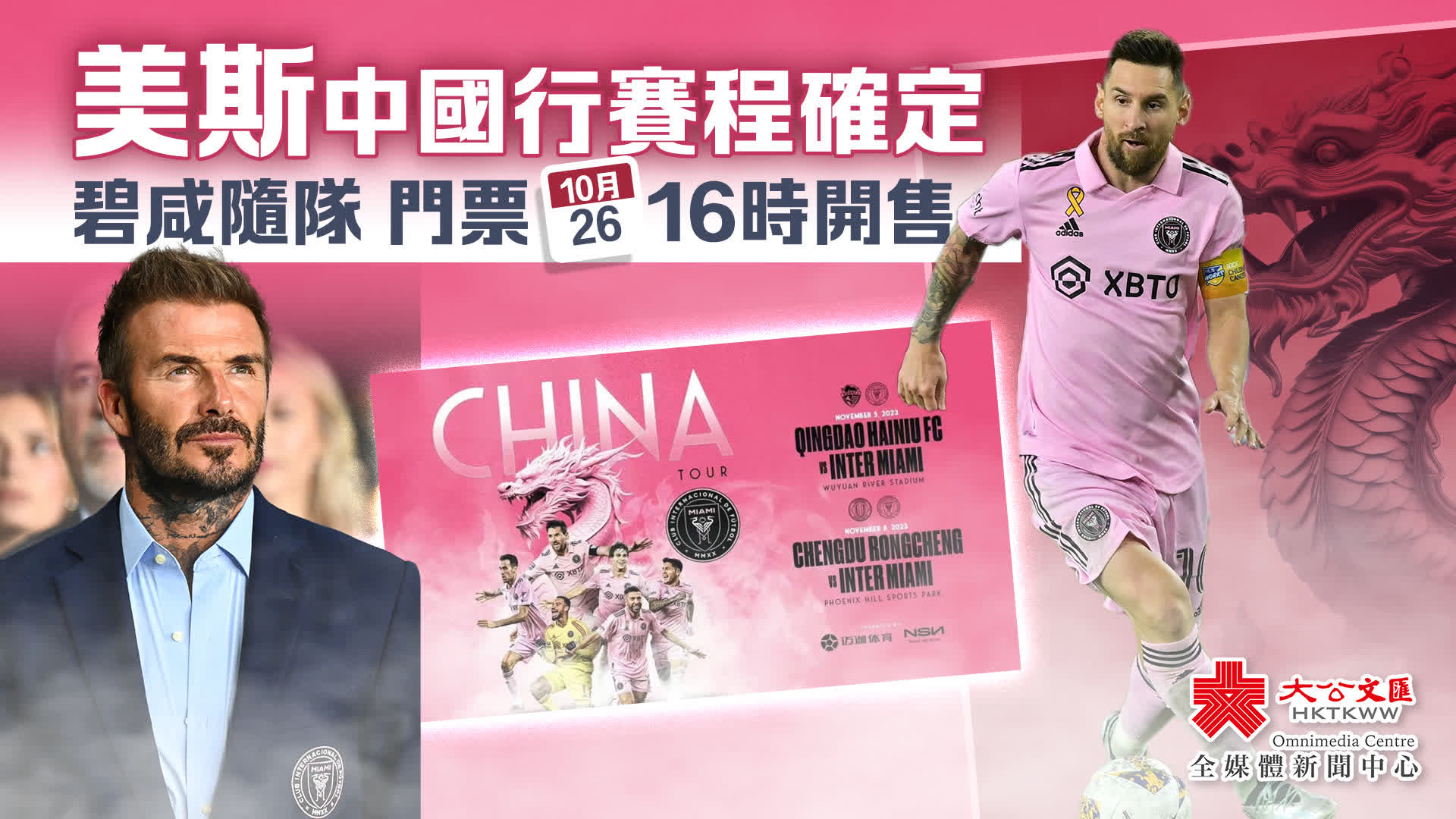 (大公文匯網記者 任芳頡)10月26日凌晨,梅西所在的美國職業大聯盟邁阿密國際俱樂部官方發文,確認了11月中國行兩場比賽賽程:將在11月5日、11月8日分別在海口五源河體育場、成都鳳凰山足球場與青島海牛、成都蓉城兩支俱樂部進行友誼賽。梅西今年6月曾率領阿根廷隊到訪中國,這是梅西今年第二次中國行,據悉,本次比賽梅西和邁阿密國際俱樂部的老闆,前英格蘭球星大衛·貝克漢姆都將來華。這一次中國行的門票將在北京時間26日下午4點開售。