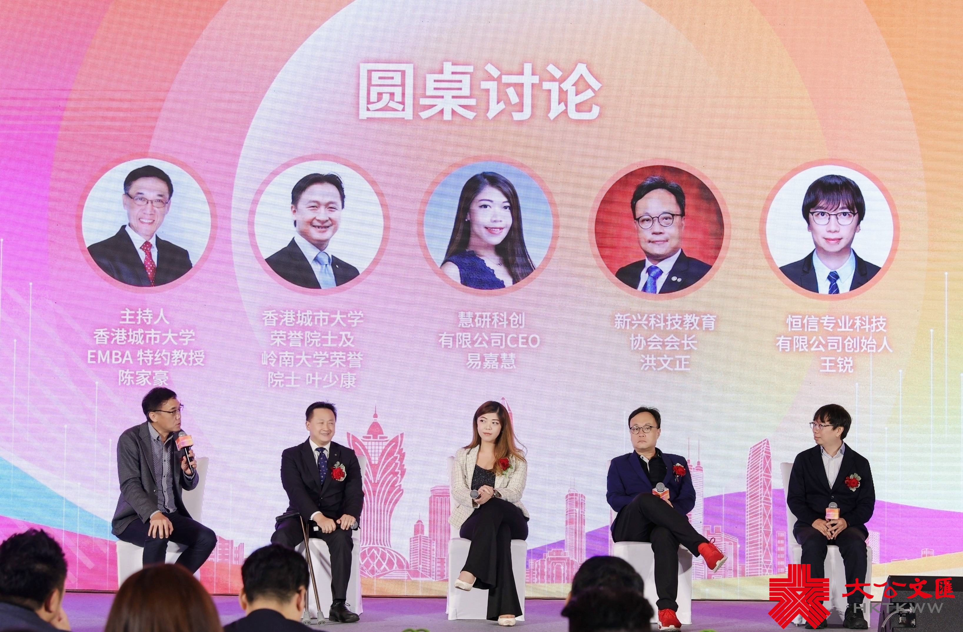 圓桌討論環節,邀請了香港八大院校教授代表及企業精英:香港城市大學EMBA特約教授陳家豪,香港城市大學及嶺南大學榮譽院士葉少康,慧研科創有限公司CEO易嘉慧,新興科技教育協會會長洪文正,恆信專業科技有限公司創始人王銳。他們探索大灣區的智慧革命下,人工智能技術在創新與經濟發展中的關鍵作用,同時各抒己見交流深港進一步融合的創想,促進深港情感相連、科創相融。