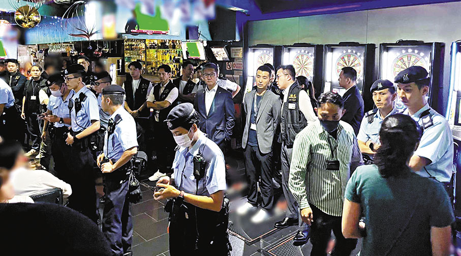 之後,蕭澤頤更帶隊到屯門青菱徑一帶的桌球室、遊戲機中心、酒吧查牌。