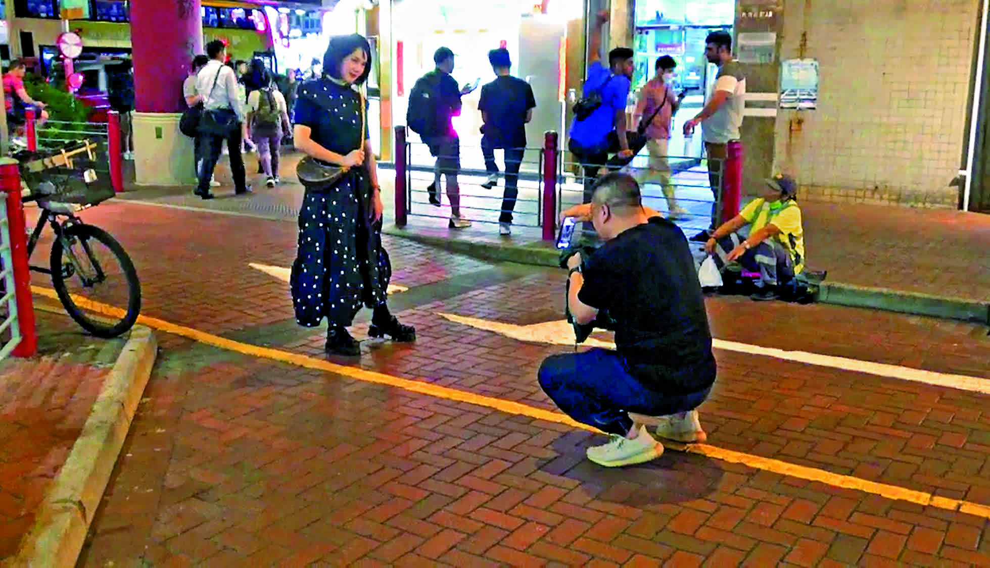 沿着尖沙咀星光大道,一如以往站滿了打卡人潮,當中不少是來自大灣區內地城市的旅客,多以維港景色、麥兜豬銅像為打卡主題;亦有不少旅客在K11廣場購物後與親朋好友一起到海濱打卡,或坐在椅子上吹吹海風,欣賞維港美景。
