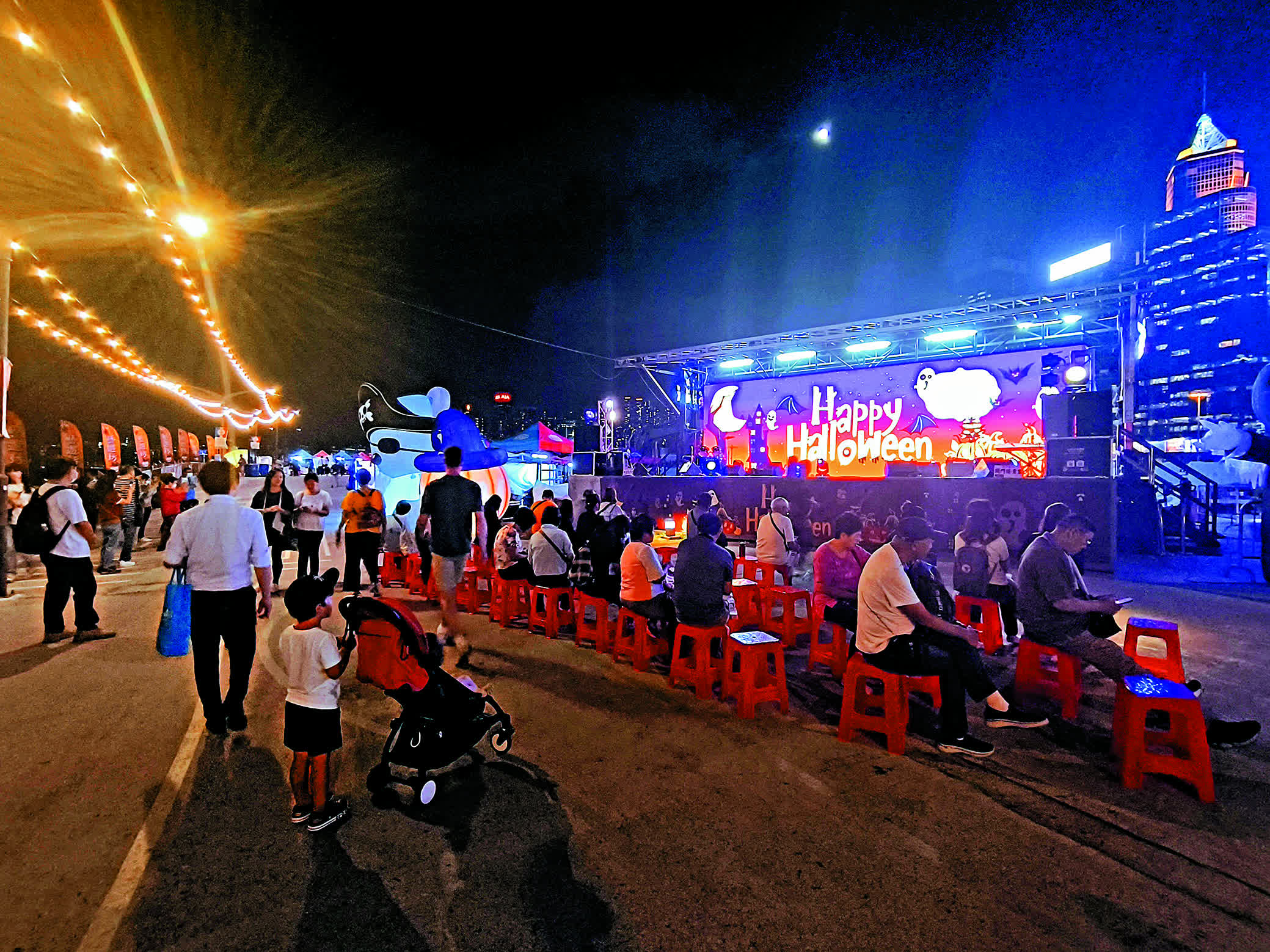 特區政府善用維港海濱長廊推出「香港夜繽紛」,帶動旅遊產業。位於灣仔碼頭海濱長廊的海濱藝遊坊,隨着輕鬆愉悅的音樂和激光四射的霓虹燈光,空氣中傳來食物的香氣、小童的歡笑聲夾雜現場樂隊的彈唱聲,演奏出一篇「香港夜經濟」的生動樂章。