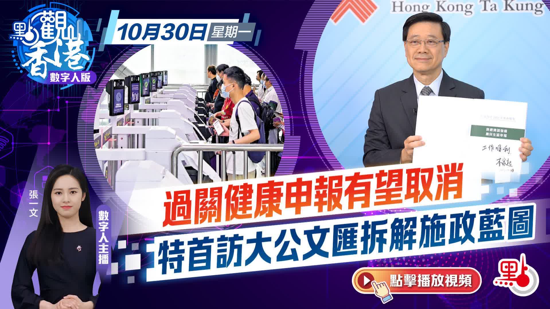 相信取消過關健康申報之後,兩地人員的往來會更加便利,也有利於疫後兩地的經濟復甦。上周三,行政長官李家超公布了任內第二份施政報告,以「拚經濟謀發展,惠民生添幸福」為主題,提出了多項新措施。特首發表施政報告後的首個周六,就到訪香港大公文匯傳媒集團,並接受專訪,親自闡述施政藍圖將如何落實。李家超表示,今年的施政報告除了字數多(3.5萬字)之外,涵蓋也更廣泛,有宏觀措施,有微觀措施,既有內部,也有外部。他比喻,要看到香港的樹葉、樹枝、樹木,也要看到整個大森林,看到外部的機遇。李家超說:「如果用八個字概括我上任一年多以來的工作和未來的打算,我會用『迎難而上』與『攻防兼備』。」更多的施政藍圖請點擊此連結,特首為您一一解畫!