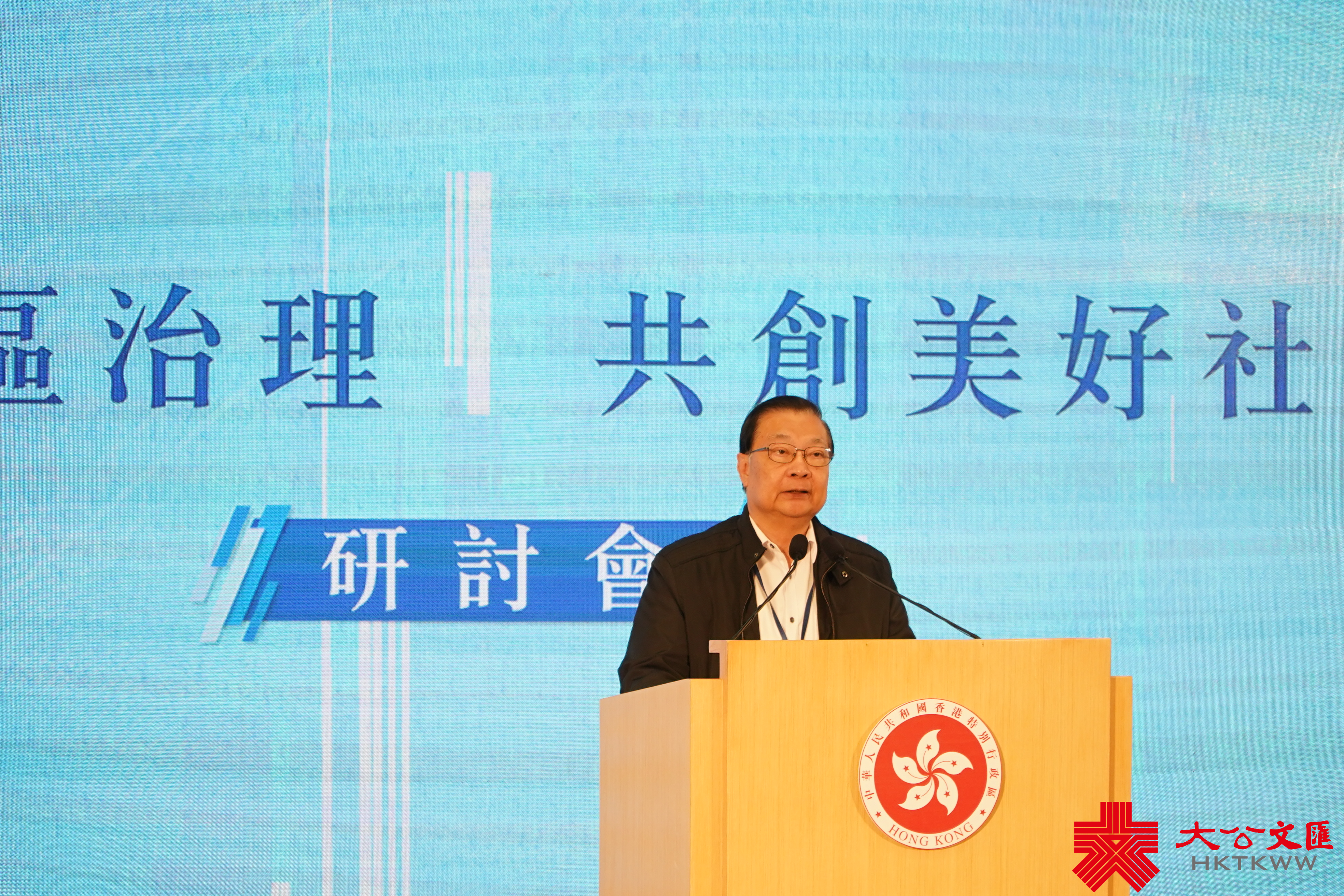 大公文匯全媒體報道,為進一步推廣特區完善地區治理體系及重塑區議會,特區政府今日(31日)舉辦「完善地區治理 共創美好社區」研討會,邀請社會各界代表人士、愛國愛港政團領袖和權威專家學者參與。